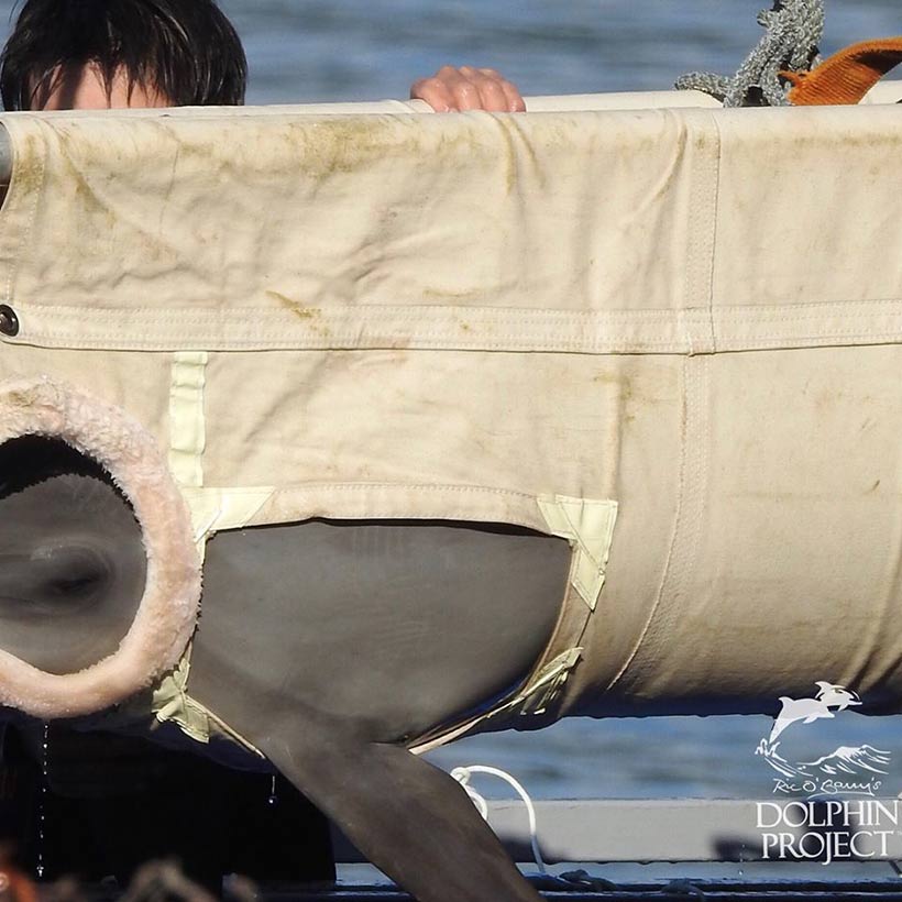 Diese intelligenten und empfindungsfähigen „Personen des Ozeans“ wurden in Schlingen gelegt, aus den dem Käfig herausgezerrt, an die Seite des Bootes gefesselt über die Bucht gezogen, mit einem Kran aus dem Wasser gehievt und in eine Holzkiste geworfen. Danach wurden sie mit einem Stapler auf einen Transporter gehoben und zum Taiji Whale Museum abtransportiert.