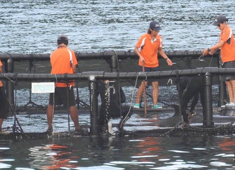 Die am 3/4/5 September entführten jungen Pilotwale werden nun im Käfig gezwungen den ersten Teil des "Trainingsprozesses" für die Delfinarienhaltung zu ertragen. Sie werden gezwungen toten Tintenfisch aus der Hand zu fressen.