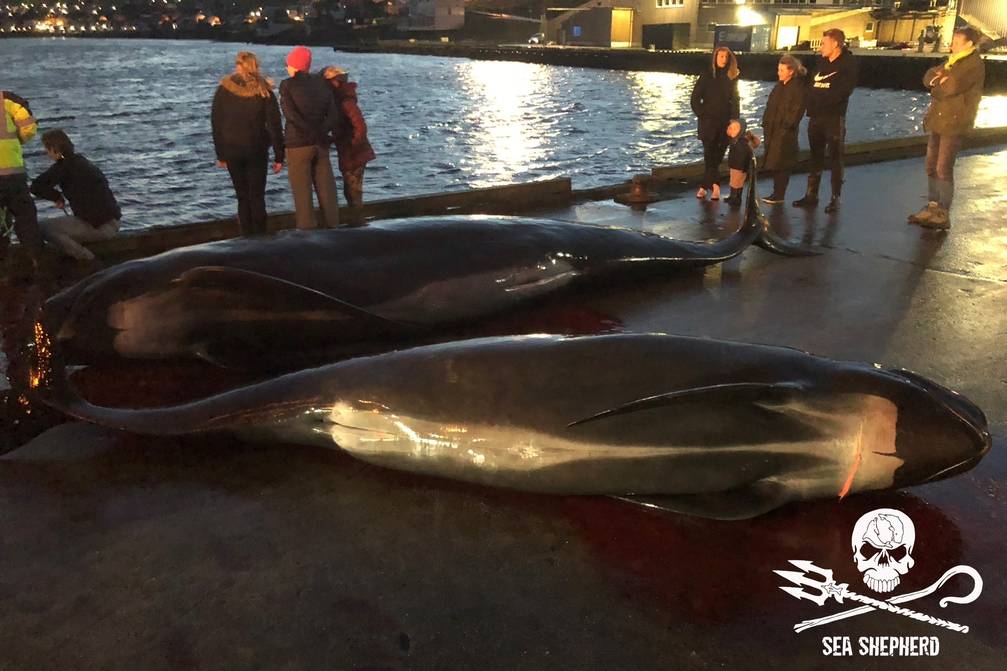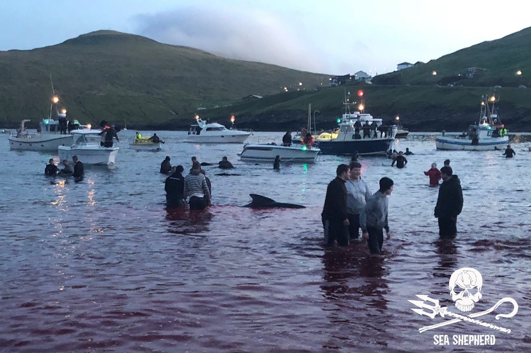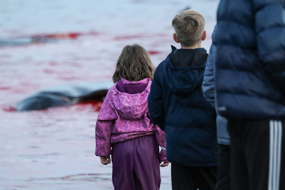Kinder, Frauen und Erwachsene nahmen am Blood-Sport teil, es ist ihre alten Wikinger-Tradition zu morden; nicht für Fleisch für den Wintervorrat, wie fälschlicherweise in den Medien erzählt wird, das durch eine färöische Propaganda ausgelöst wurde. Delfinfleisch ist giftig und ungeniessbar, in den Färöer Inseln dreht sich’s nur ums gesellschaftliche Foltern und Töten wehrloser Opfer.