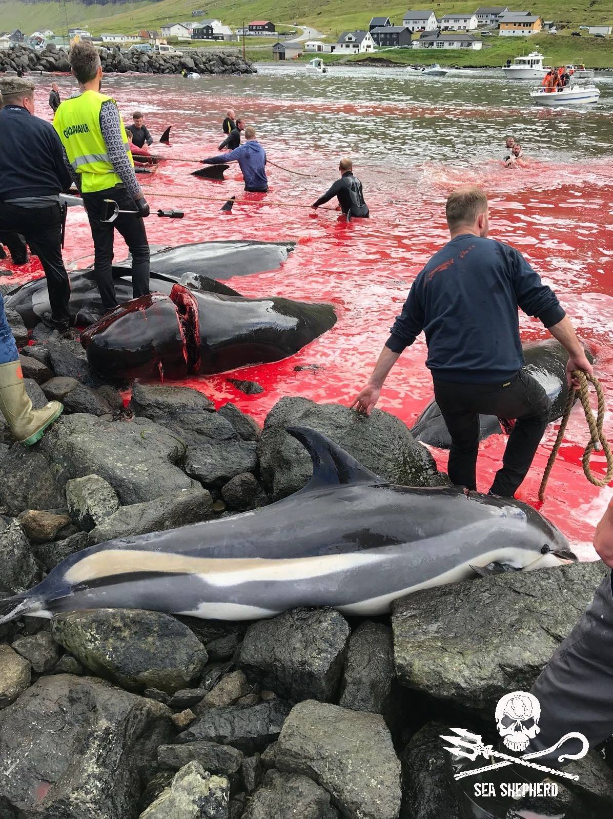 Das sadistische Massenschlachten von Grindwalen und anderen Delfinarten auf den dänischen Färöer Inseln ist barbarisch und im 21. Jahrhundert inakzeptabel. Es gibt keine Rechtfertigung für diese Brutalität, und die „Menschen“ auf den Färöern, die an dieser fortwährenden Gräueltat teilnehmen und diese unterstützen, sind Wilde ohn Einfühlungsvermögen und Mitgefühl.
