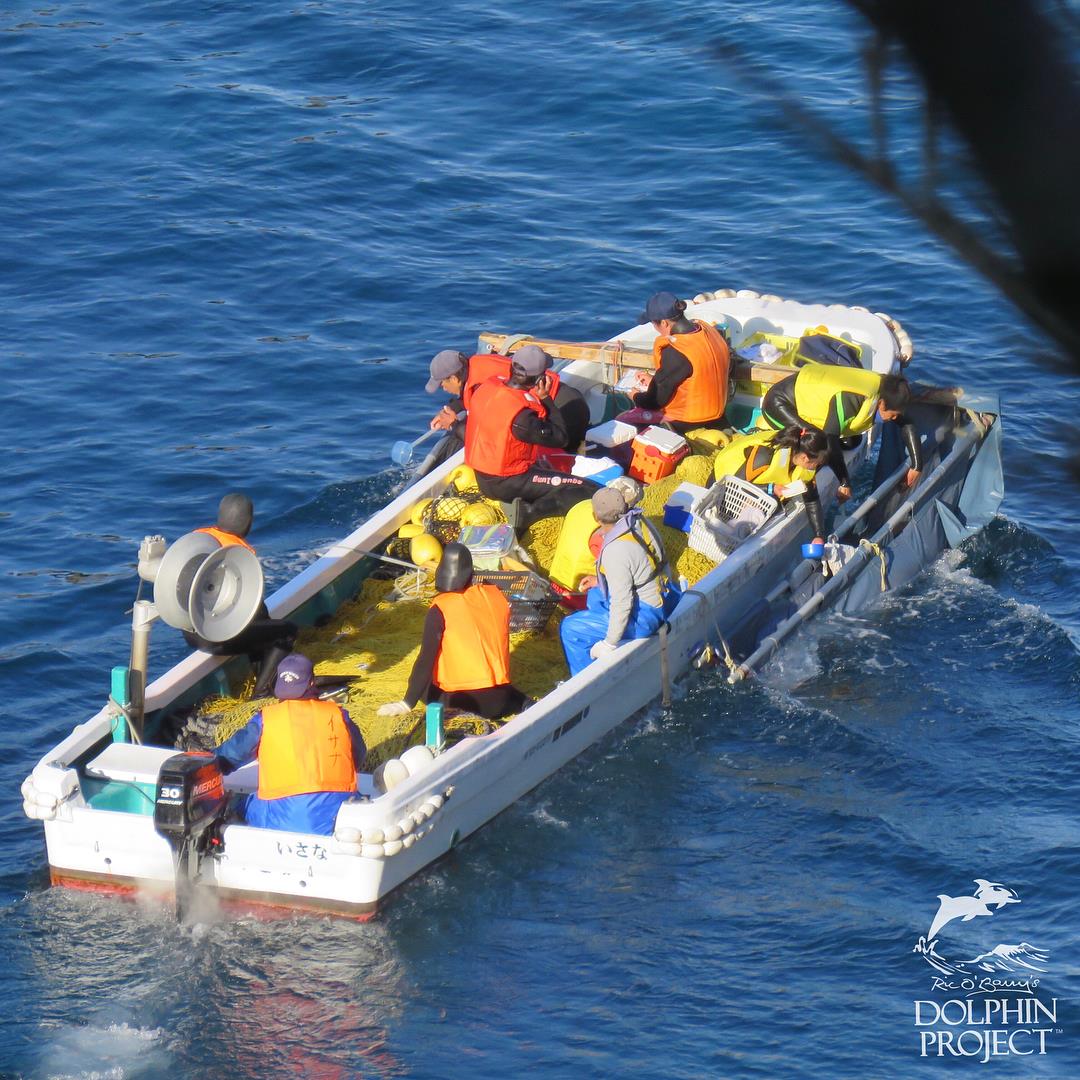 Nach über einer Stunde Terror und Folter fuhren die Jagdboote zurück in den Hafen und Boote mit Delfinleichen beladen fuhren ins Metzgerhaus. Die Cove-Monitore kamen leider zu spät zum Metzgerhaus, nur noch ein Boot war zu sehen wie gerade der letzte ermordete Delfin ins Metzgerhaus gezogen wurde, es war zu spät für ein Beweisfoto und bald darauf rollten die Mörder die Planen zurück.