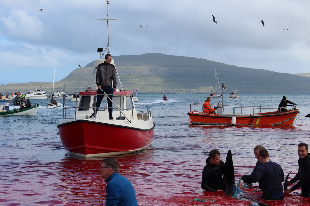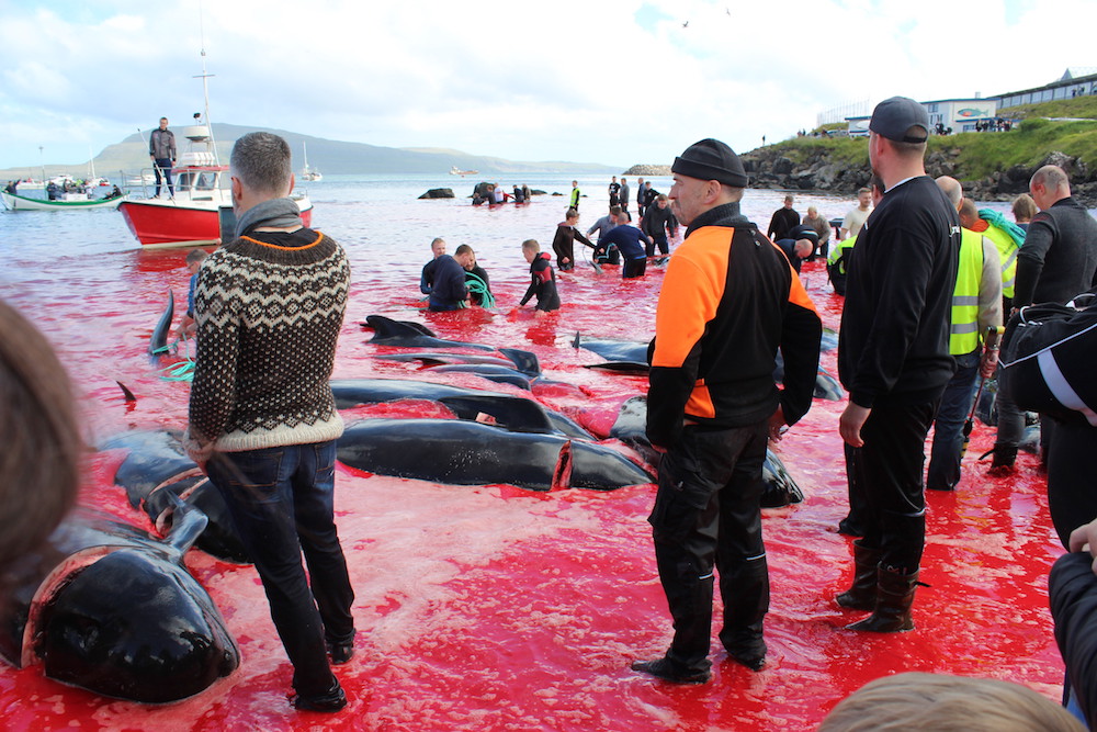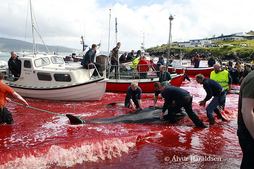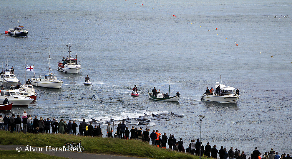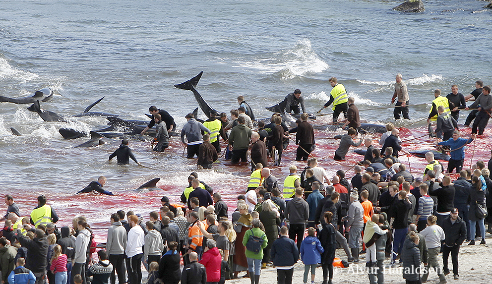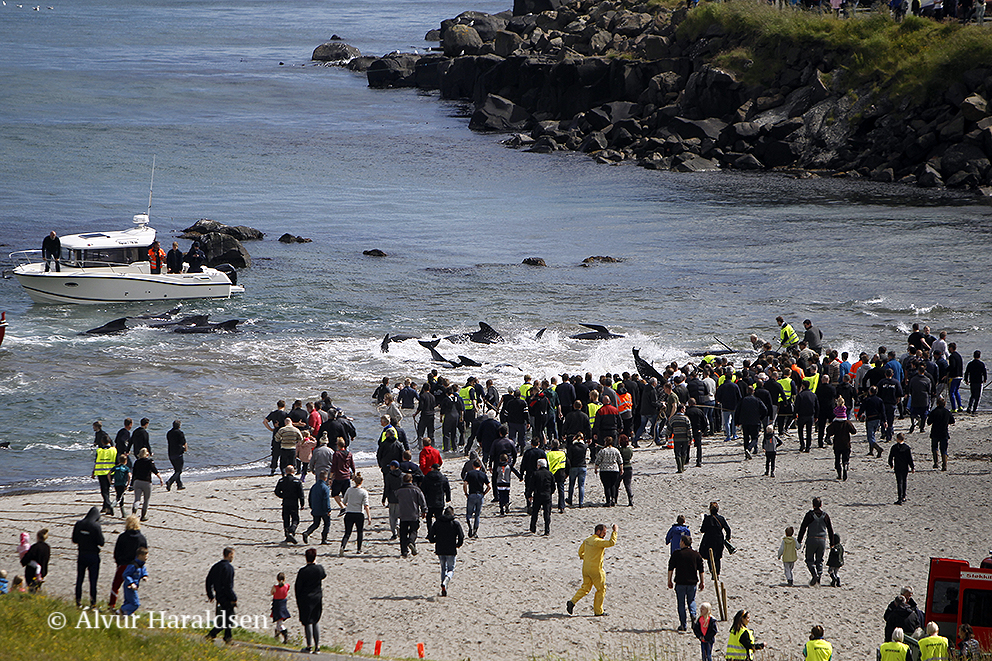 In Tórshavn wurden heute Nachmittag 51 Grindwale getötet, berichten mehrere färöische Nachrichtenseiten. Finnbogi Midjord, der örtliche Sheriff, erklärt gegenüber der färöischen Nachrichtenseite Portal.fo, "dass die Morde am Sandagerði Strand gut verlaufen sind. Es (die Morde) begann um 14.36 Uhr und um 14.51 Uhr war alles vorbei. Ich denke, es waren ungefähr 50 Wale , sagte Midjord und fügte hinzu, dass viele Menschen an den Tötungen teilnahmen - sowohl auf Booten als auch am Strand."
