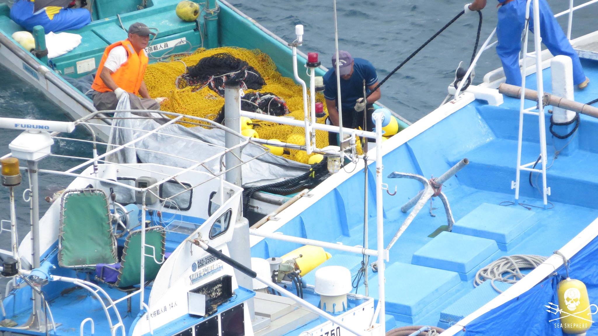 Unter den jungen Delfinen wurden drei für den Verkauf an Delfinarien entführt. Boote schleppten die gefesselten Meeressäuger zu den Schwimmgefängnissen im Hafen von Taiji wo sie in ein 10 x 10 Meter kleinen „Schwimmeimer“ geworfen wurden. Die im Boot befindlichen Trainer gossen mit Schöpfkellen während der Fahrt in das Gefängnis Meerwasser auf die Delfine um die Beobachter zu täuschen, als würden sie Delfine lieben. Die Pseudo Delfintrainer von Taiji sind manchmal beim Töten von Delfinen mitwirkend, zumindest meistens dabei; eine typische Heuchelei auf Japanisch. Diese entführten, traumatisierten Delfine wurden nahe beim Metzgerhaus vorbei gezogen wo ihre Mütter und Familienmitglieder geschlachtet wurden.