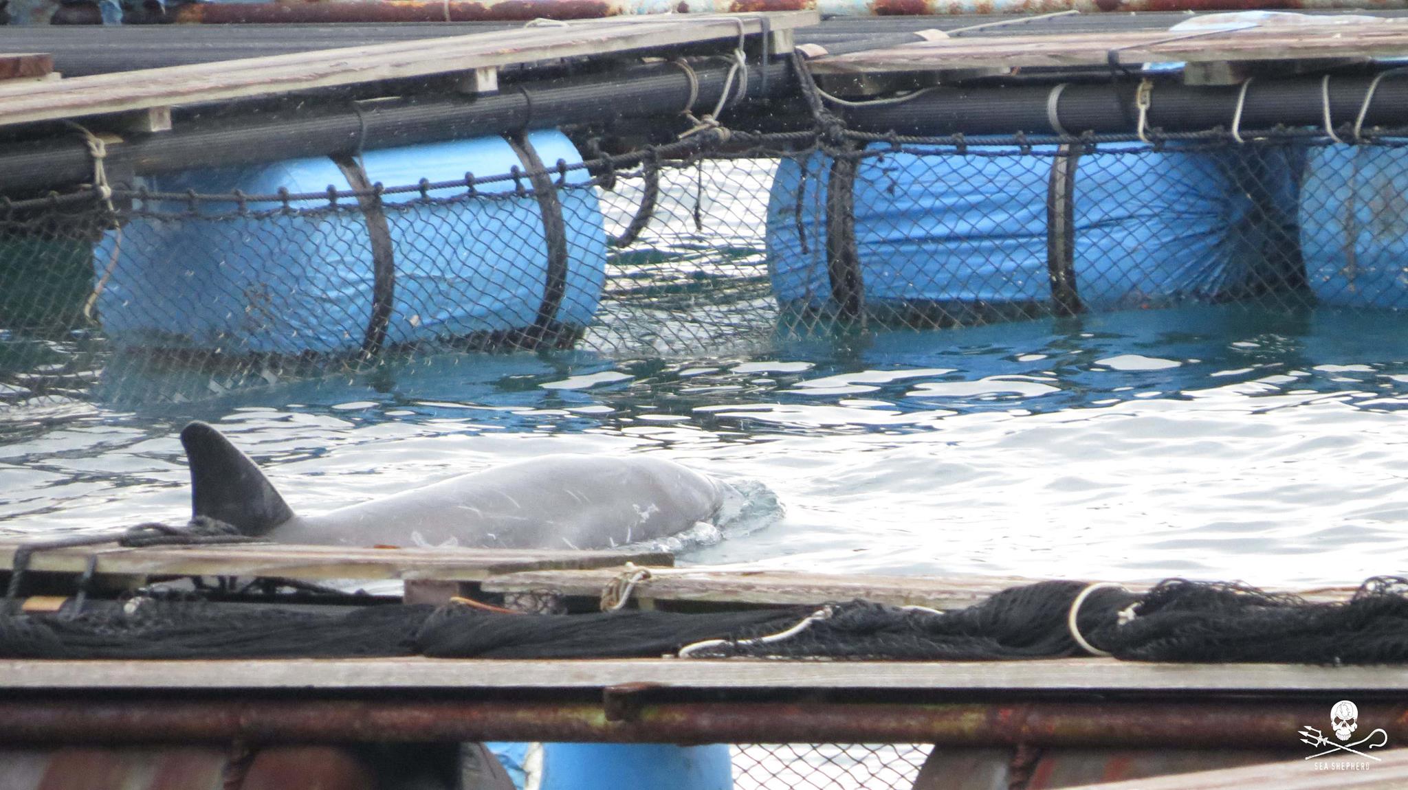 Vier erwachsene Delfine wurden in Schlingen unter die Planen gezogen und brutal ermordet.