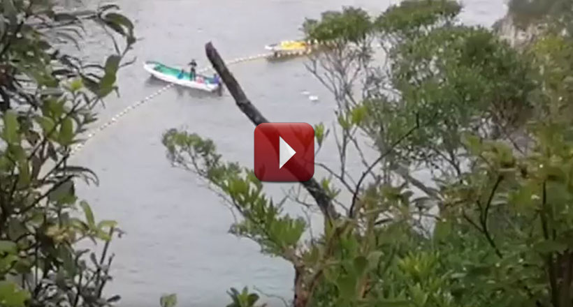 Die Risso‘s Delfinfamilie versuchte während der grausamen Treibjagd mehrmals zu fliehen, einmal sah es auch tatsächlich so aus als würde es ihnen gelingen, doch die japanischen Jäger waren von Profitgier getrieben zu hartnäckig um ihren grossen Zahltag zu verlieren. Nach etlichen Stunden der gewalttätigen Treibjagd war die erschöpfte Delfinfamilie hinter Netzen in der Bucht gefangen. Ihnen blühte die gleichen Qualen und Schmerzen wie der Risso’s Delfinfamilie gestern.