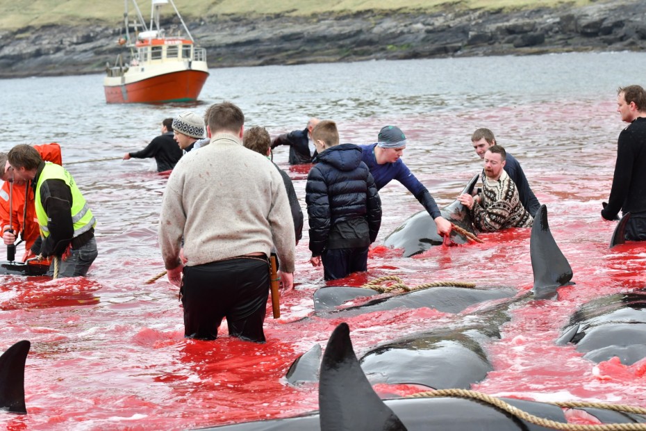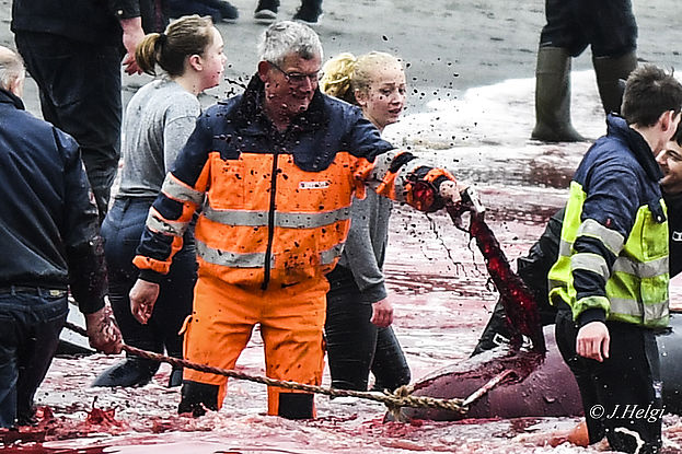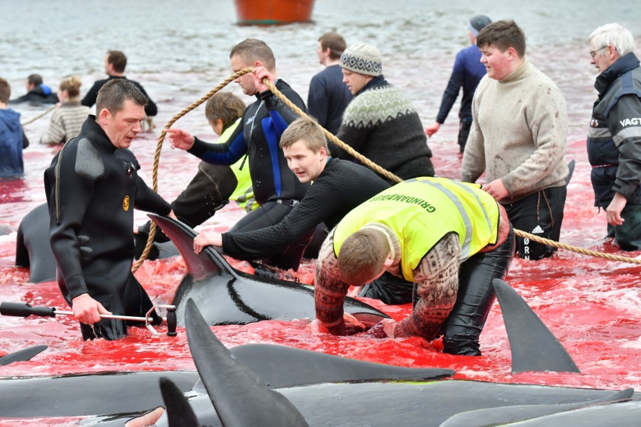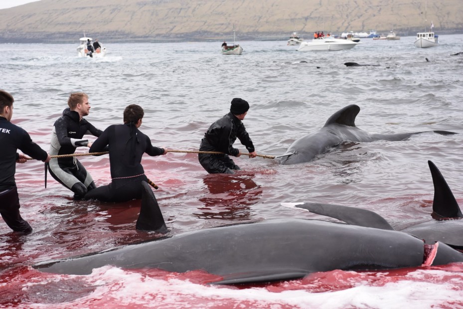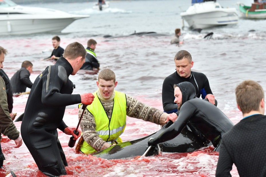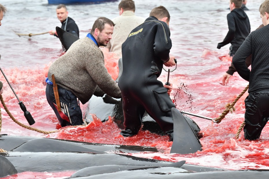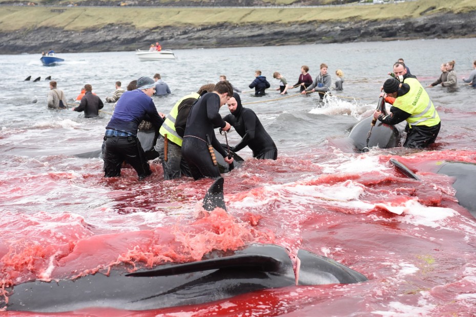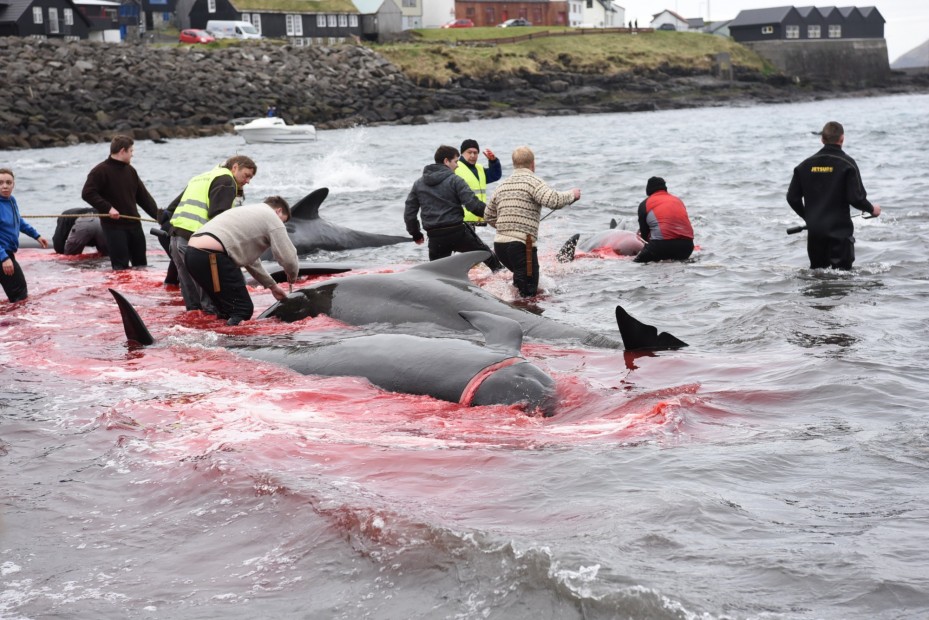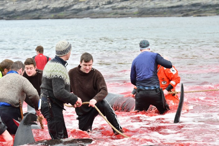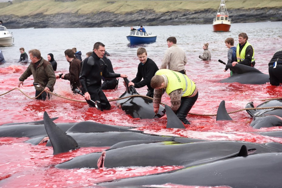 Färöer Töten Delfine nicht des Fleisches wegen, es ist Blutsport und Spass, eine alte grausame Tradition um ihre Männlichkeit zu bestätigen. Es heisst in den Färöer Inseln „Ein Mann der keinen Wal getötet hat ist kein Mann“.