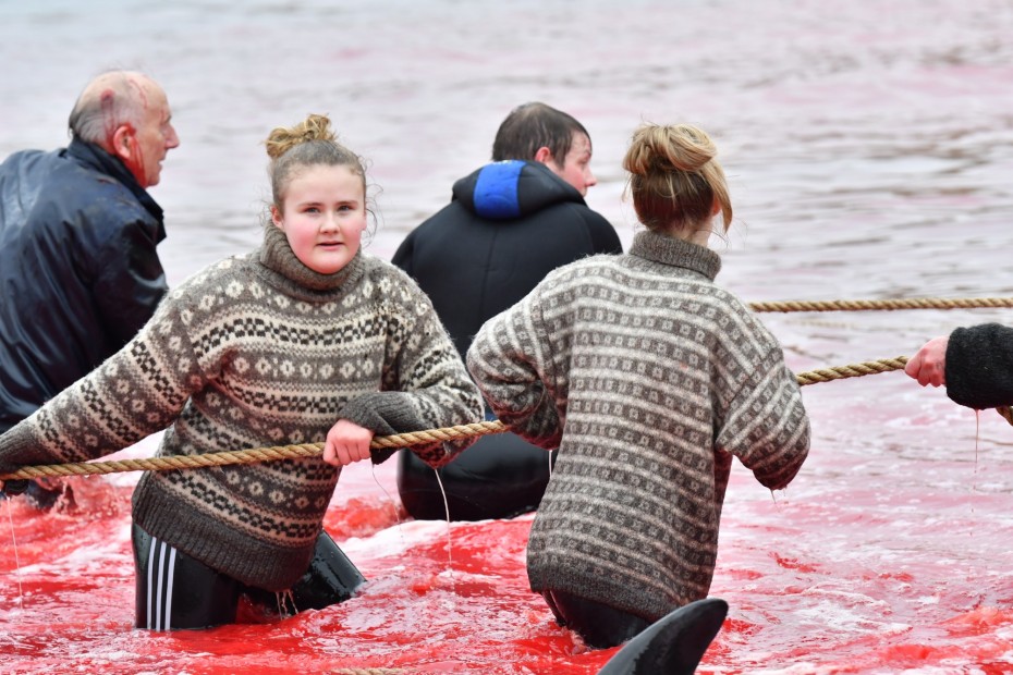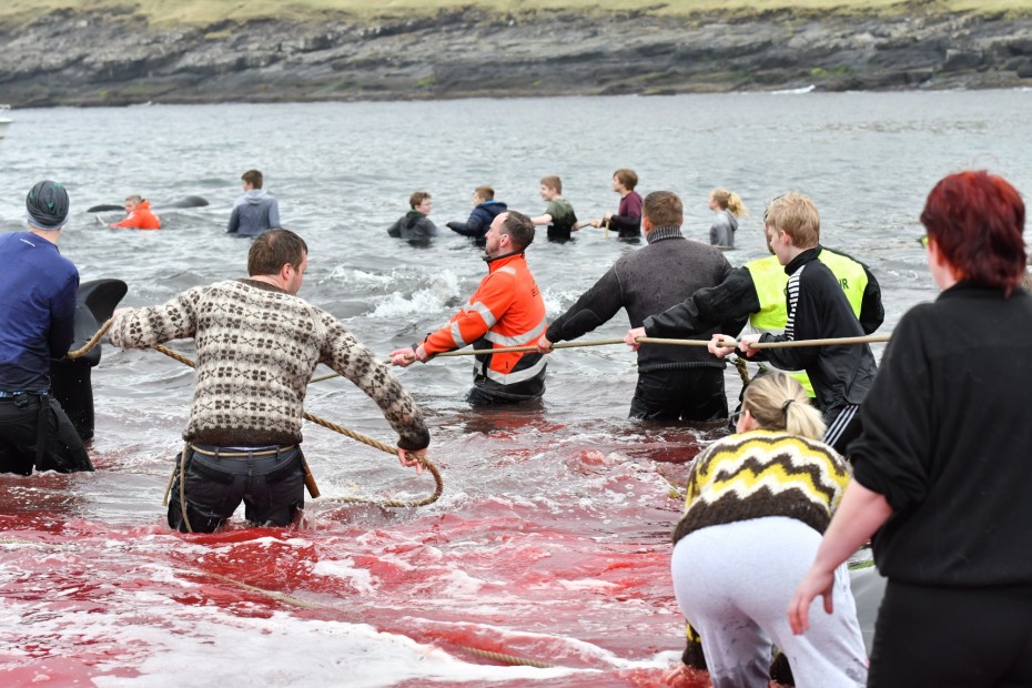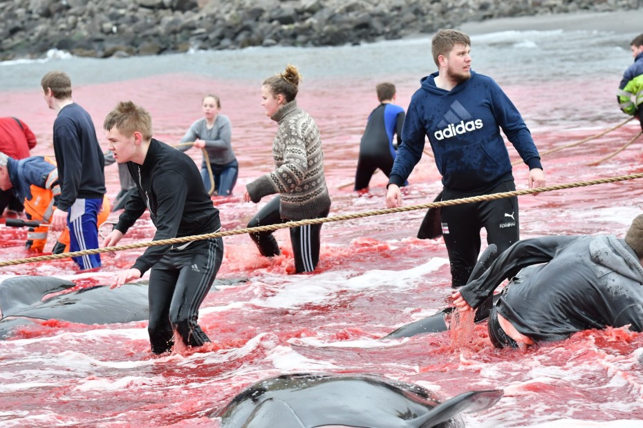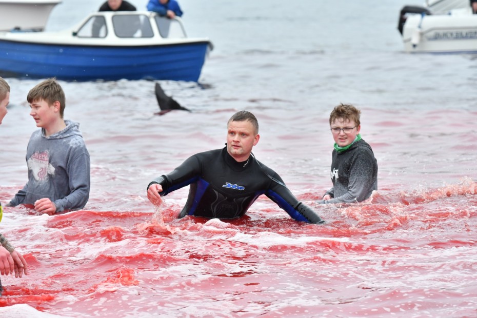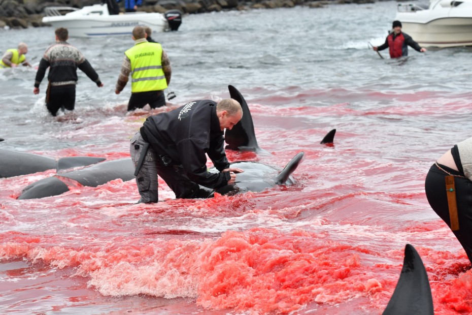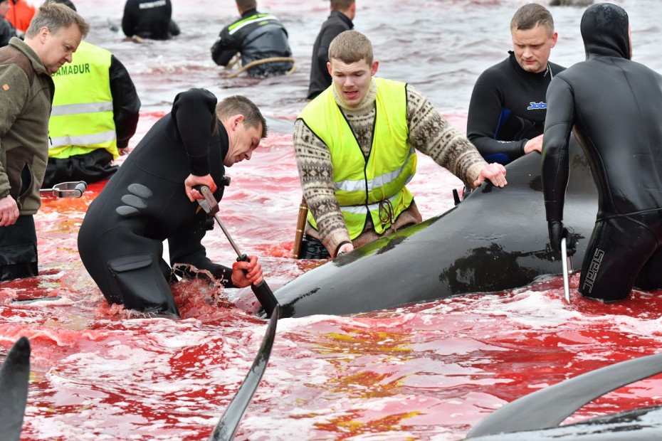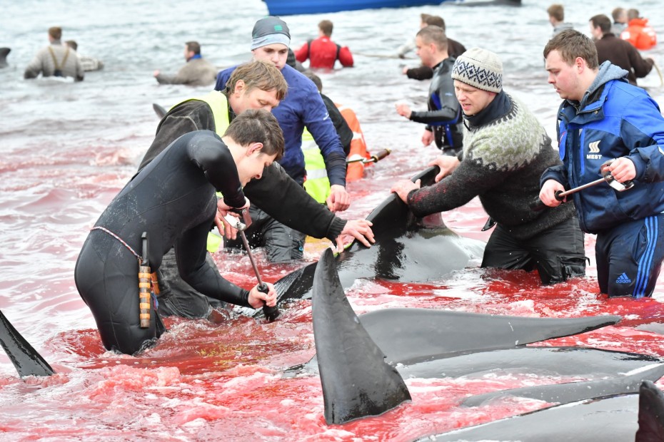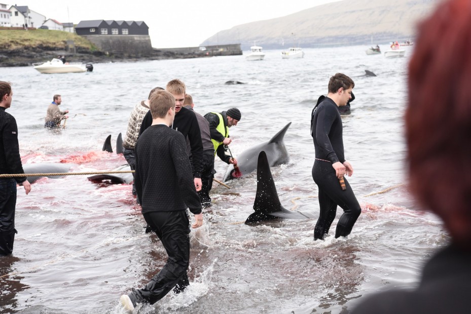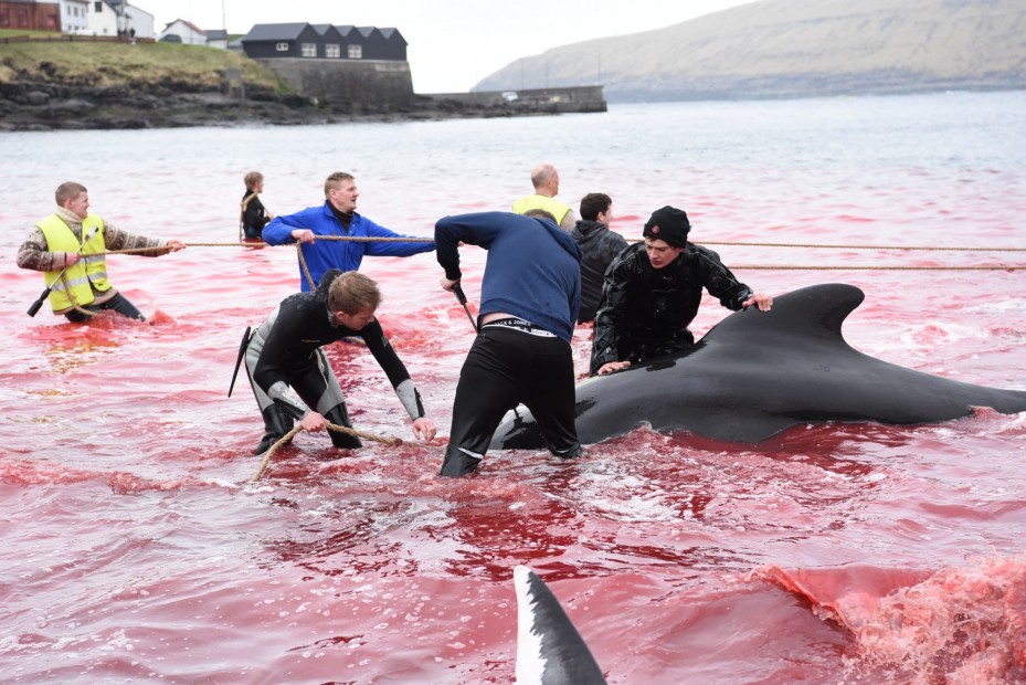 Färöer Töten Delfine nicht des Fleisches wegen, es ist Blutsport und Spass, eine alte grausame Tradition um ihre Männlichkeit zu bestätigen. Es heisst in den Färöer Inseln „Ein Mann der keinen Wal getötet hat ist kein Mann“.