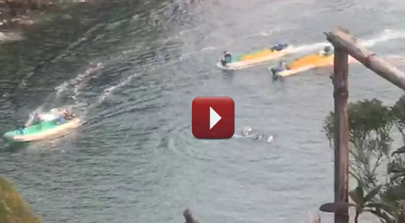 Es sah zuerst so aus als würden später Trainer in die Bucht kommen um einige dieser Delfine für den Verkauf an Delfinarien entführen, aber anscheinend hatten sie in dieser Saison genug Risso’s Delfinkinder von ihren Müttern gestohlen. Eine halbe Stunde später kamen nur Killer in die Bucht.