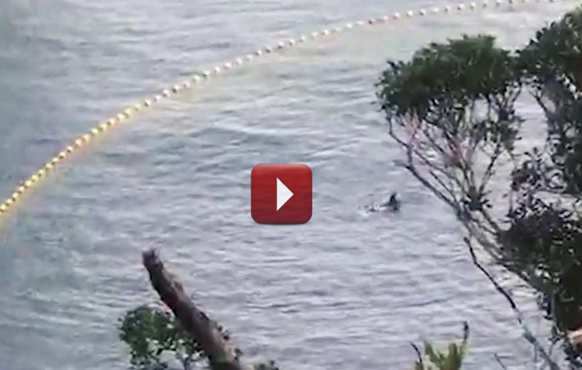 Die zwei Delfinkinder wurden offensichtlich von den Trainern und Mördern, unter den Planen aus den Augen der Öffentlichkeit, brutal misshandelt und vermutlich geprügelt. Als Trainer und Mörder die beiden Delfinkinder an ein Boot gefesselt wegschleppten, blutete eines der beiden stark aus dem Kopf und hinterliess eine blutige Spur im Wasser. Das blutende Delfinkind schlug in der Schlinge heftig um sich, hob immer wieder seine Schwanzflosse und klatschte aufs Wasser. Der kleine Delfin wollte nur zu seiner Mutter, wehrte sich tapfer vergebens gegen die japanischen Monster.