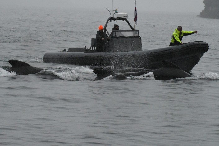 Färöer töten zum ersten Mal seit dem Zweiten Weltkrieg Pilotwale (Delfine) an einem Neujahrstag.