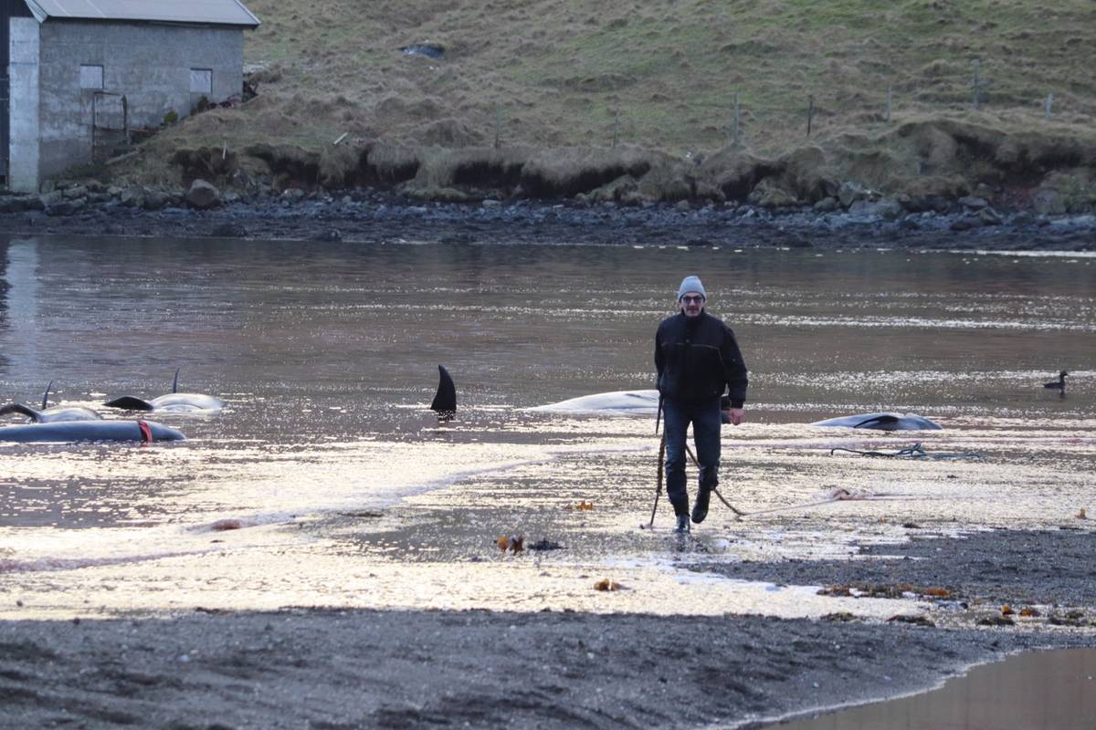 Alkoholisierte Färöer bekamen anscheinend am Neujahrstag einen Rückfall ihrer Sehnsucht zum Töten als die Meldung umherging, dass eine Pilotwal Familie in der Nähe der Insel Suðuroy gesichtet wurde. Welche nüchterne, vernünftige Person würde sich sonst zum Morden ins eiskalte Atlantikwasser wagen; und vorallen Spass am Töten zeigen?