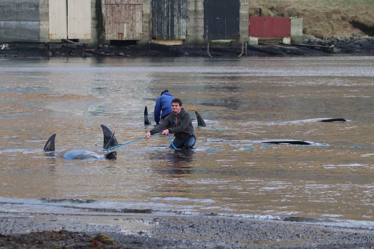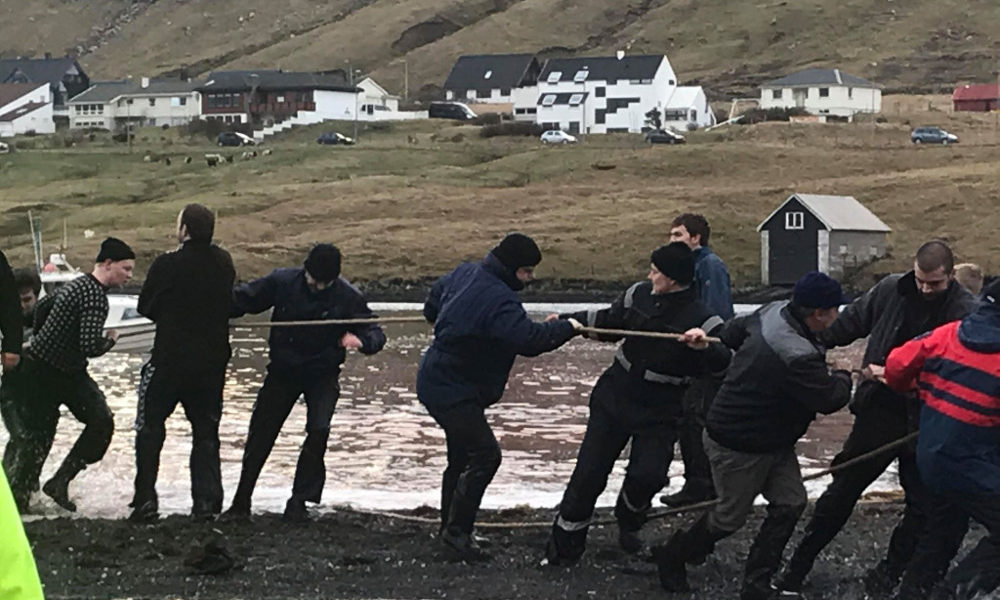 Titel der Färöischen Medien hiessen: „ Die Menschen auf der Insel Suðuroy erhielten heute das perfekte Neujahrsgeschenk, denn heute Nachmittag wurden im Dorf Tvøroyri 70 Pilotwale getötet.“
