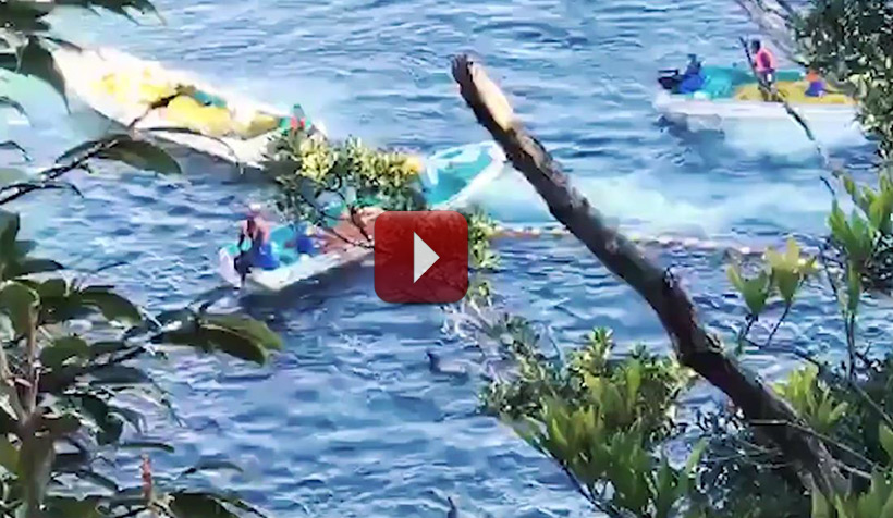 Die Tieftaucherdelfine waren dann nach zwei Stunden Folter erschöpft und verängstigt hinter dem Netz vor der Bucht gefangen. Ein Boot der Killer wartete eine halbe Stunde lang in der Nähe des Netzes an der linken Felswand auf Trainer und Mörder wo sich die total verängstigte Delfinfamilie eng zusammengedrängt im Kreis drehte und um ihre Kinder zu schützen.