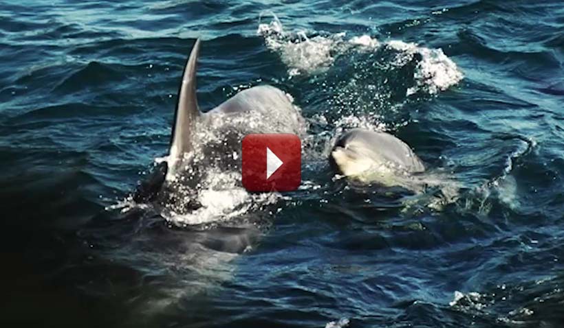 Bild: Die Delfinfamilie wird kurz vor dem Eingang zur Bucht terrorisiert