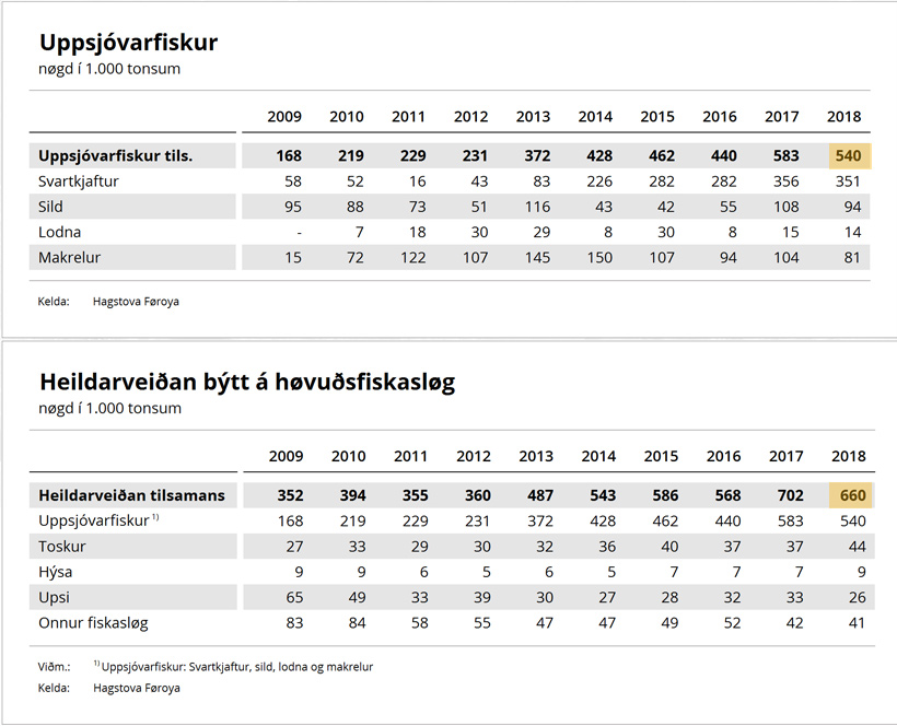 Wer glaubt, die Färöer töten Delfine hauptsächlich als Nahrung, der irrt. Wie zuvor schon einigemale erwähnt, ist das Fleisch der Delfine giftig und sollte auf Rat der Ärzte nicht verzehrt werden. Und wer das Märchen der Medien glaubt, das letztes Jahr verbreitetet wurde, "die Färöer töten Wale um den Winter zu überstehen", der irrt sich schon wieder. In 2018 fing die färöische Fischfangindustrie 1'200'000 Tonnen Fisch, pelagischen Fisch, in Tiefwasser und in fremden Gewässern. Die Fänge der kleineren Fischer wurden möglicherweise nicht miteingerechnet.