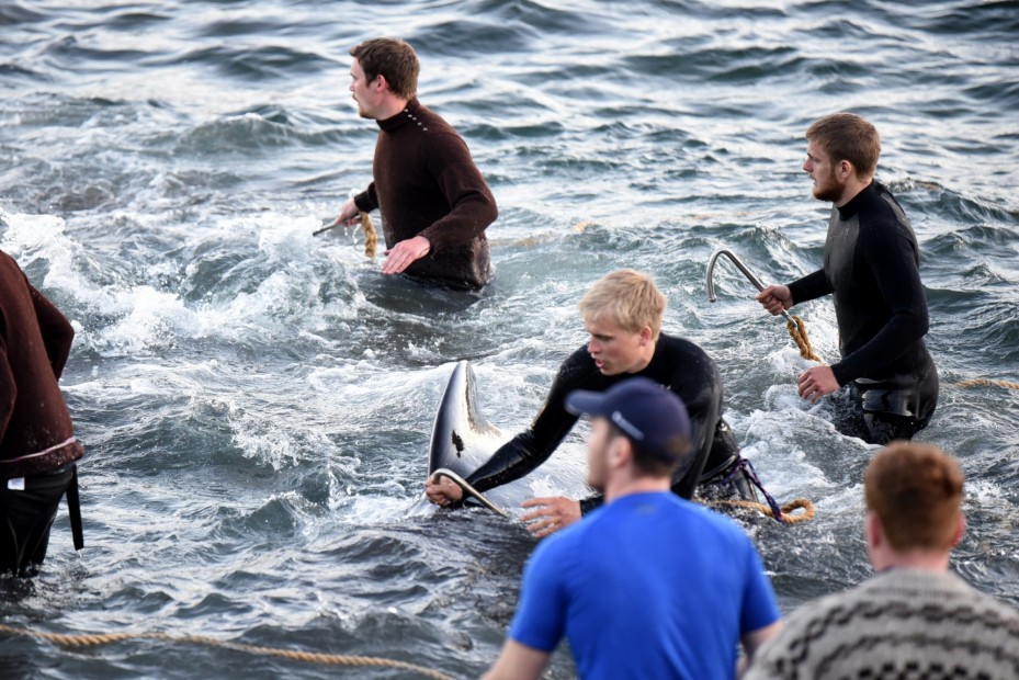 Die Tortur begann gestern gegen 20:00 Uhr, als den örtlichen Behörden vor Leynar an der Westküste der Insel Streymoy in der Gemeinde Kvívíkar eine Delfinfamilie gemeldet wurde, die in Färöisches Gewässer schwamm.