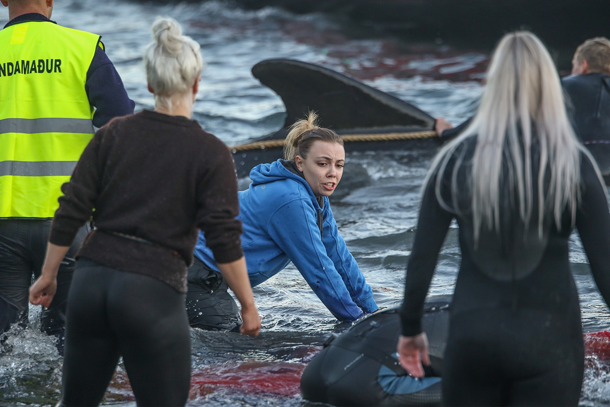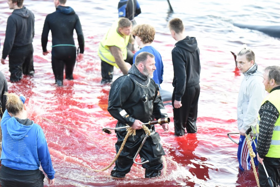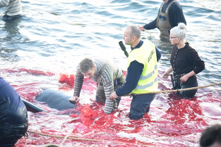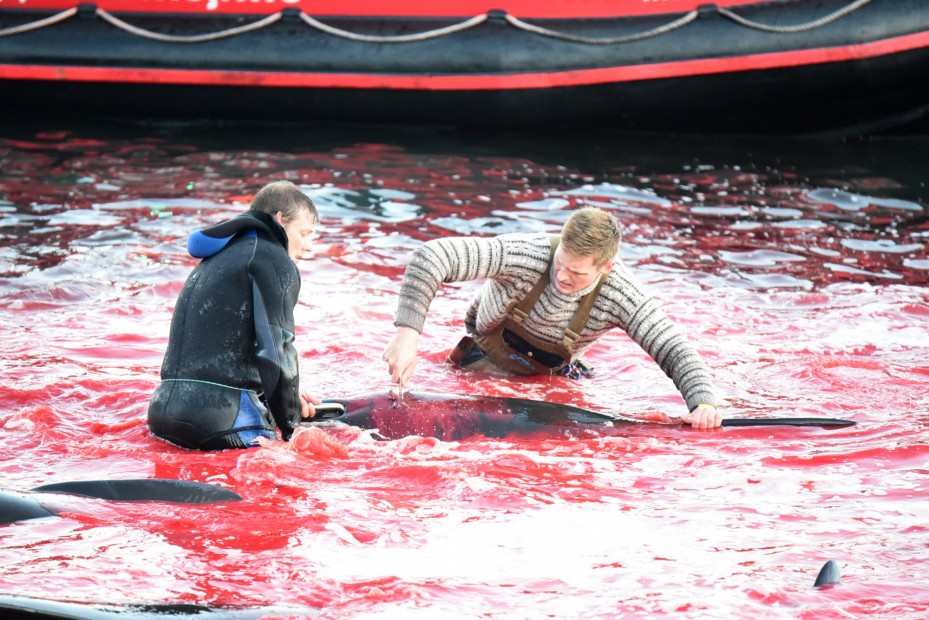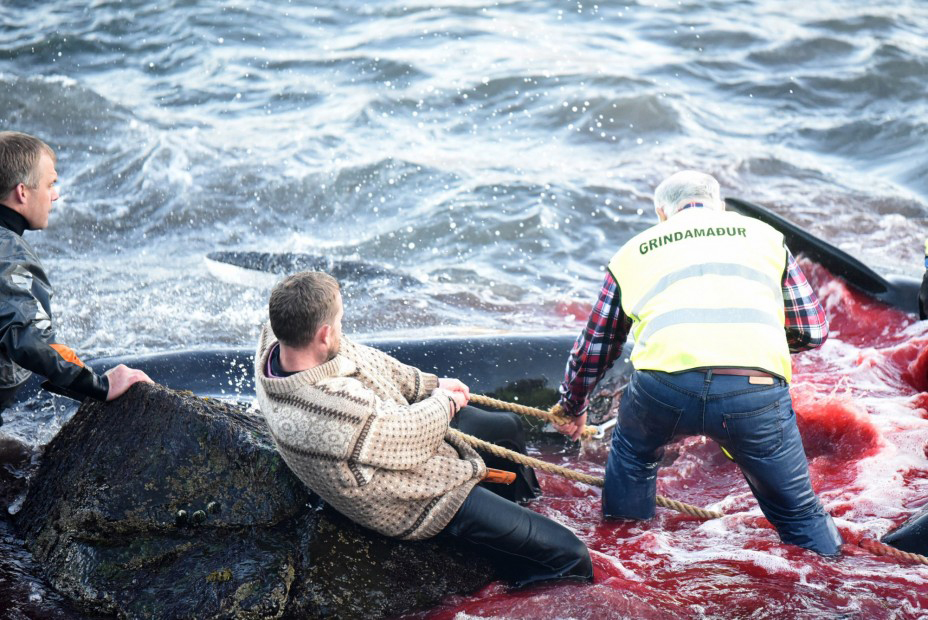 Dieses grausame Verbrechen ist traditioneller färöischer Blutsport, auch Lustmord genannt, der meist an Schönwetter-Wochenenden zur Unterhaltung, Spass und Befriedigung begangen wird. Für Massenmörder die im Blutrausch Wehrlose niedermetzeln gibt es ein Wort: Psychopath..... Hintergrund ist die Regulation der Pilotwale und andere Delfinarten durch Tötung um den Fisch für sich zu beanspruchen, obwohl unbekannt ist, wie viele Delfine es im Nordatlantik gibt. Die Färöische Stadt Klasvik ist die Schwesternstadt von Taiji Japan, wo aus demselben Grund, Delfin-Regulation, Delfine in Massakern abgeschlachtet werden. Am 1. Juli startet Japans illegaler, kommerzielle Walfang von Taiji aus, und am 1. September die Massenvernichtung von Delfinen und Entführung von Delfinkindern für Delfinarien. Mit dem Verkauf der entführten Delfinkinder an Delfinarien, 99% nach China, finanziert Taiji ihre Delfinmassaker.