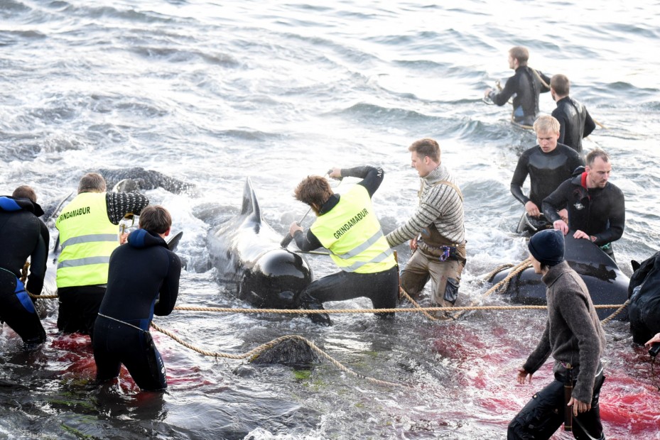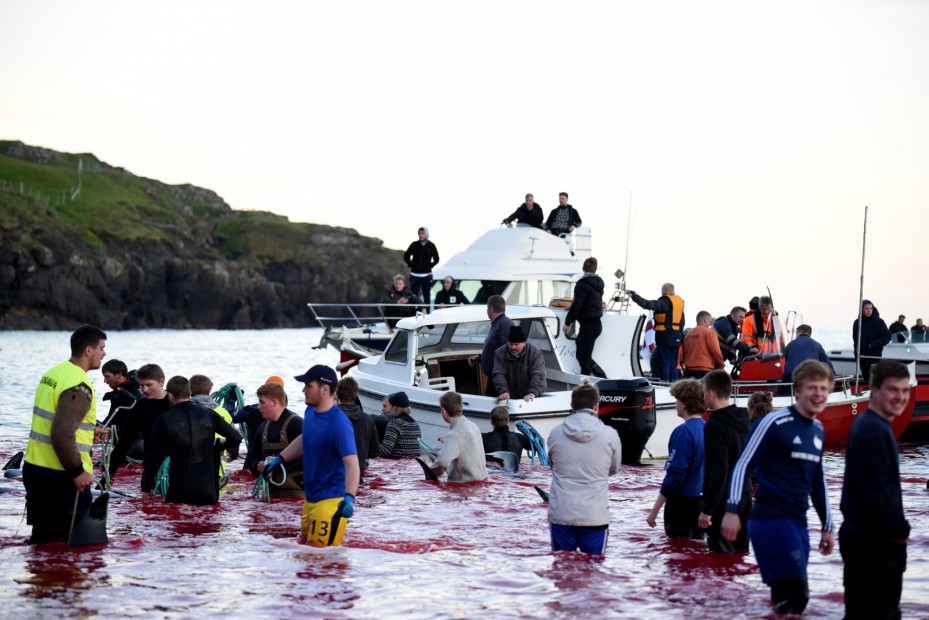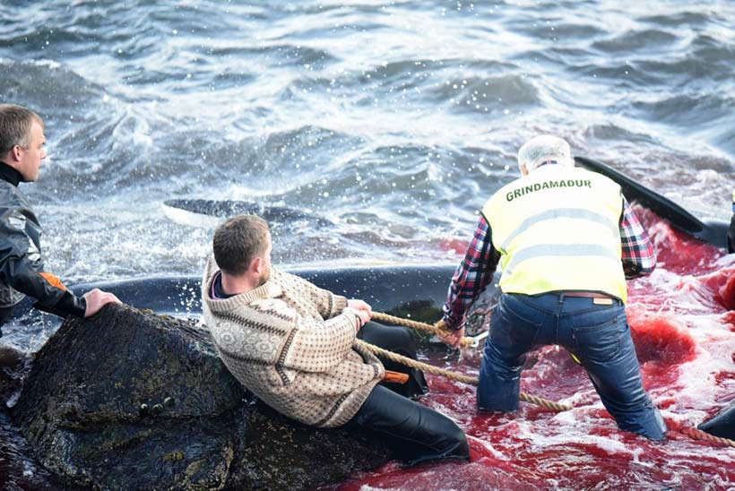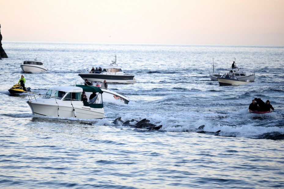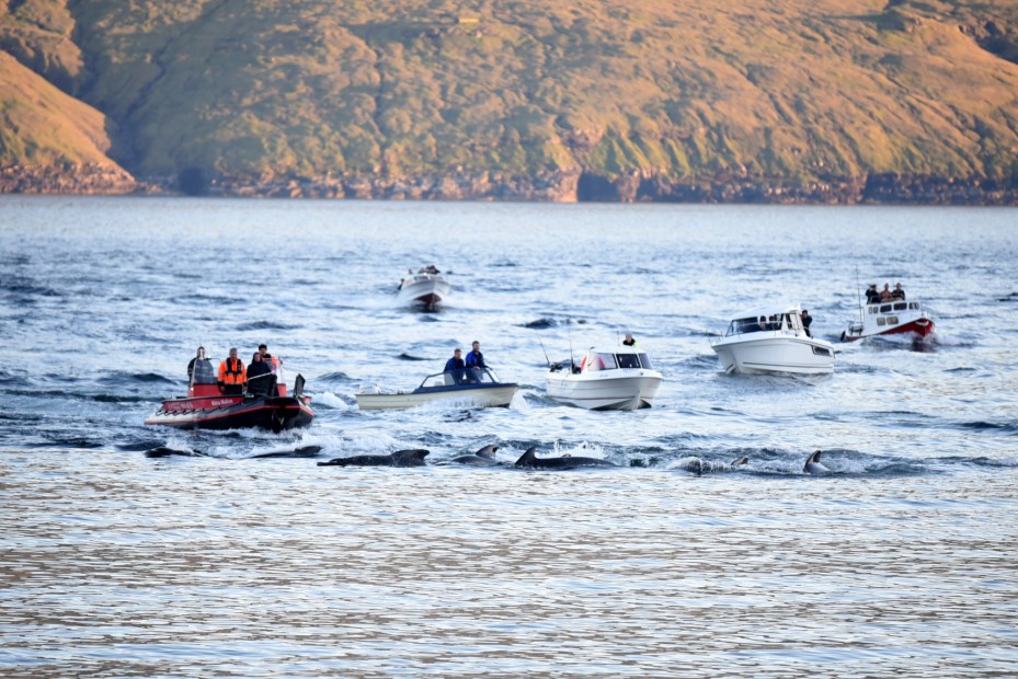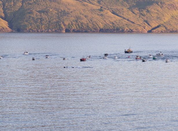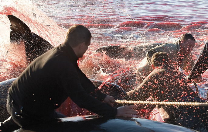 Gestern Abend terrorisierten färöische Verbrecher mit Schnellbooten, Luxusjachten und Jet-Skies fast vier Stunden lang in ihrem barbarischen Traditions-Blutsport eine Delfinfamilie (Pilotwale), anschliessend wurden die verängstigten Meeressäuger grausam niedergemetzelt. Es ist nicht bekannt wie viele Babydelfine während der Treibjagd ertranken oder an Sauerstoffmangel erstickten, dies wird nie veröffentlicht.