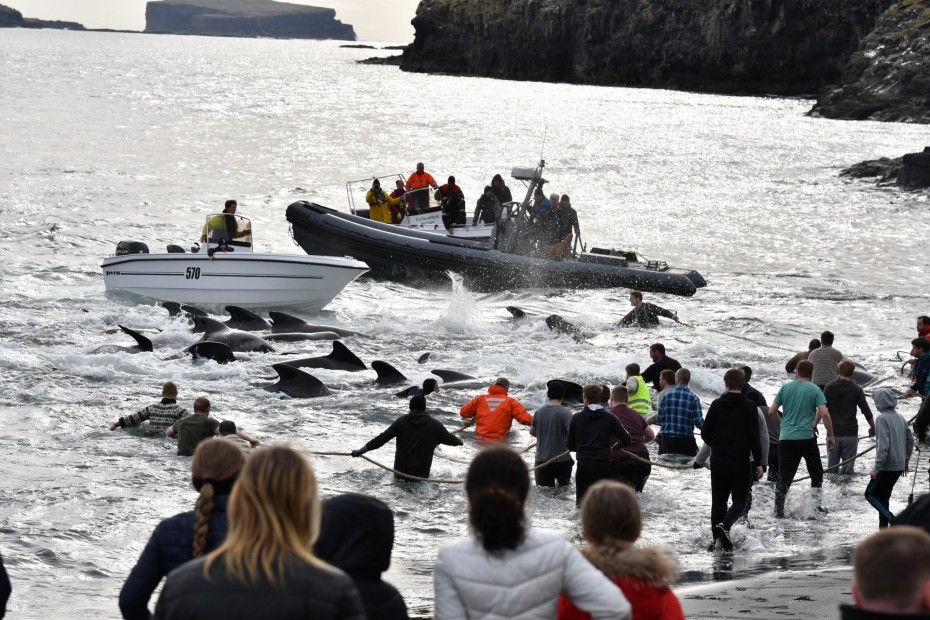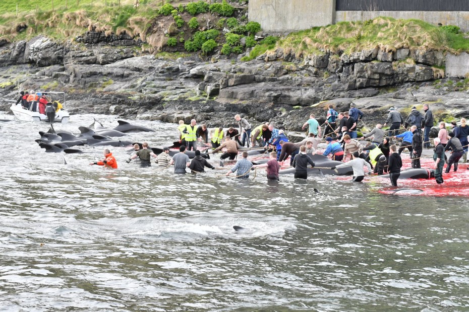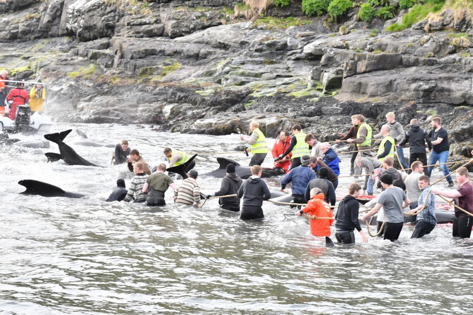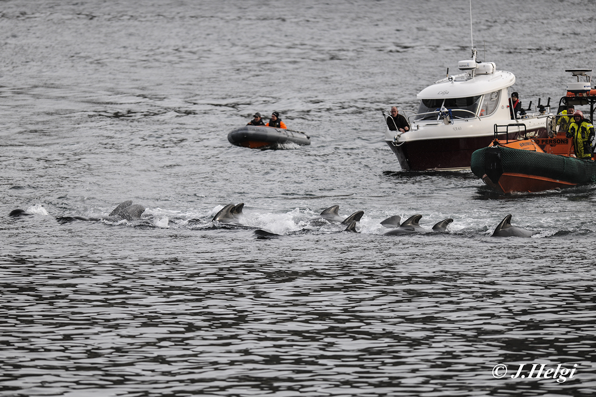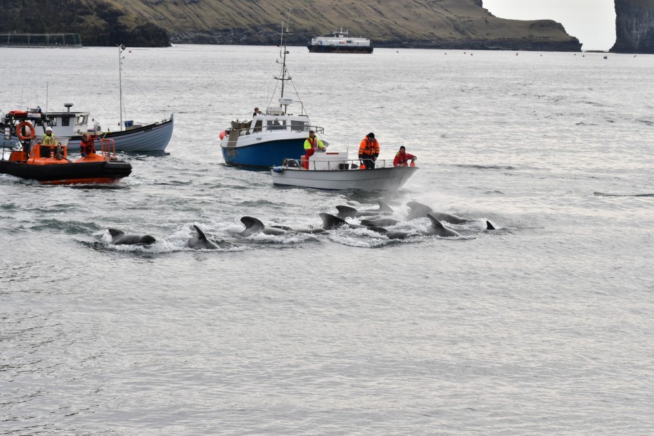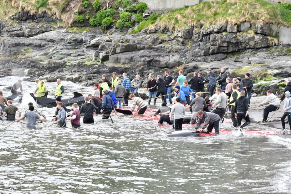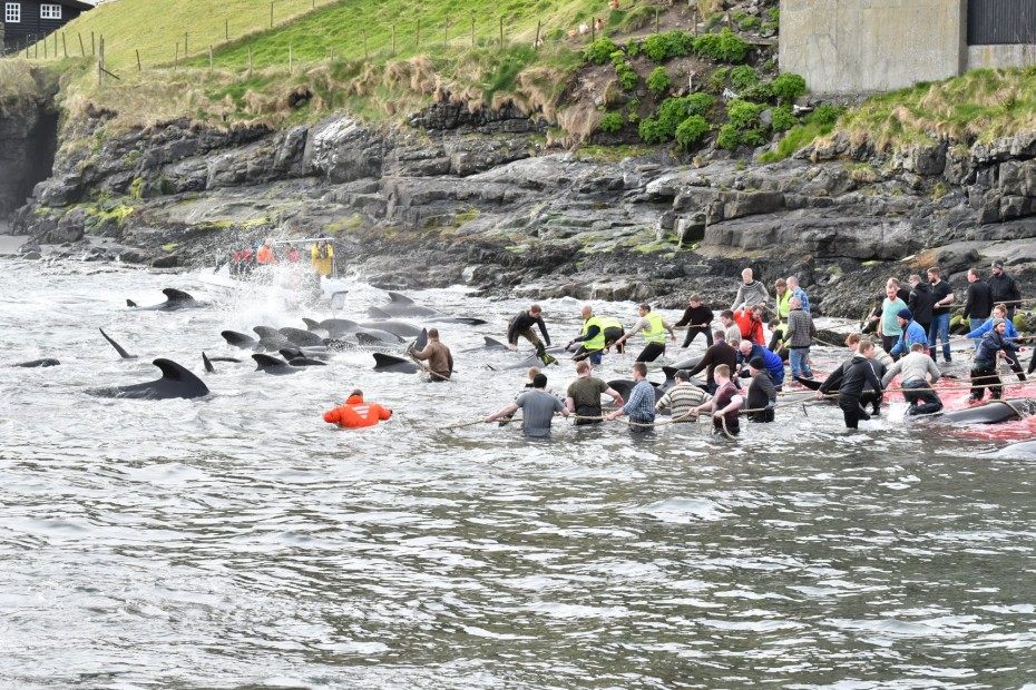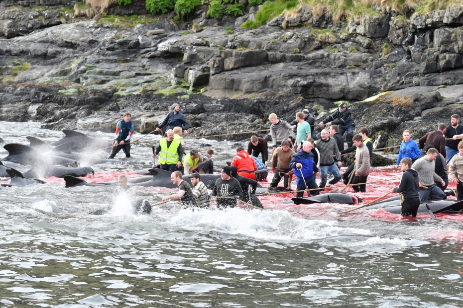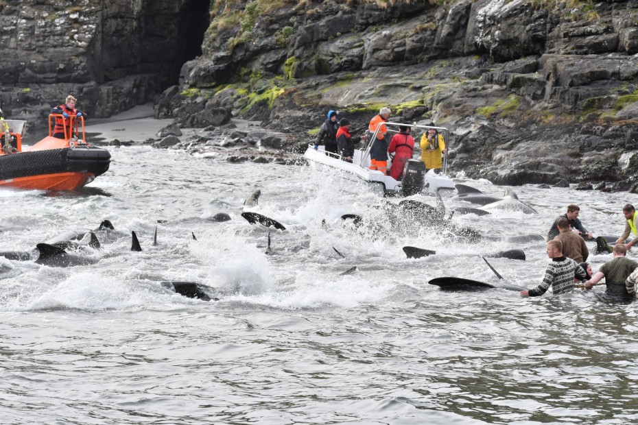 Berichten zufolge wurden in der Bucht von Bøur 55 Langflossen-Pilotwale (Delfine) massakriert. Viele kleineren modernen Schnellbooten starteten die grausame Treibjagd in der Nähe von Mykines und terrorisierten die Delfine an den Strand von Bøur . Die Delfinfamilie wurde vom färöischen Fischereipatrouillenschiff Brimil entdeckt. Die Besatzung der Brimil meldete die Sichtung den Behörden, die kurz darauf noch am späten Sonntagabend eine "Meute" für das Delfinmassaker mobilisieren konnte.