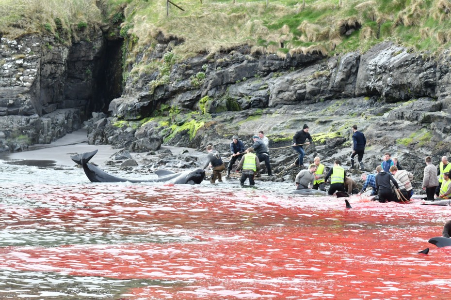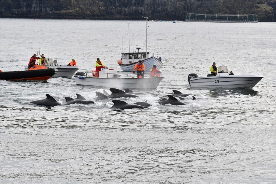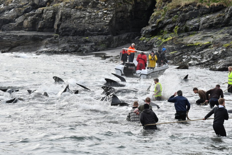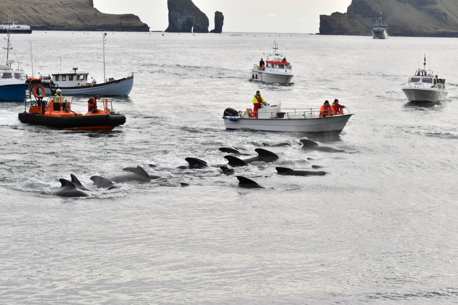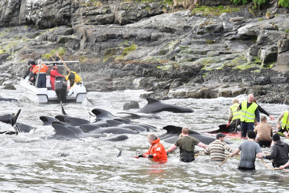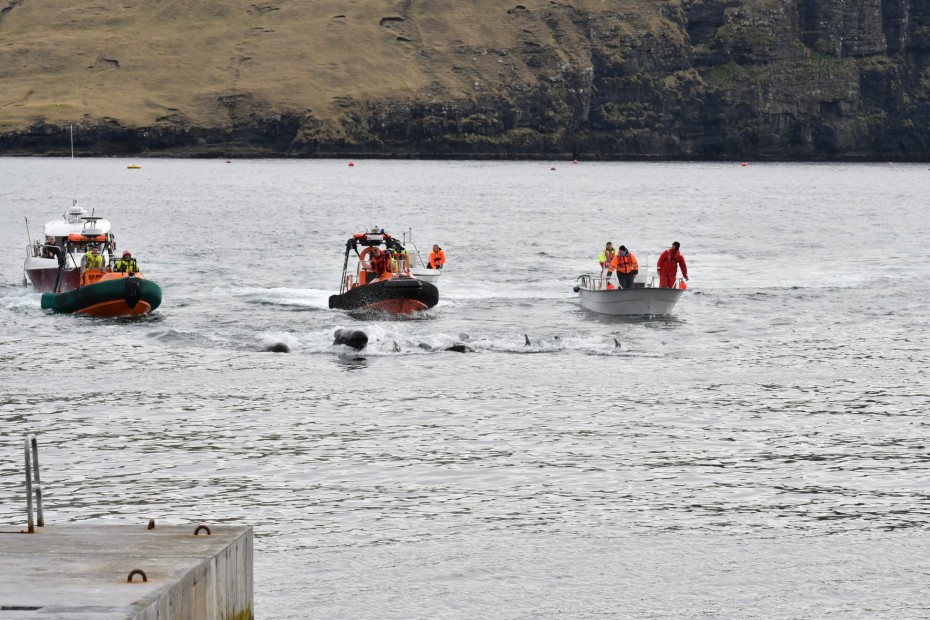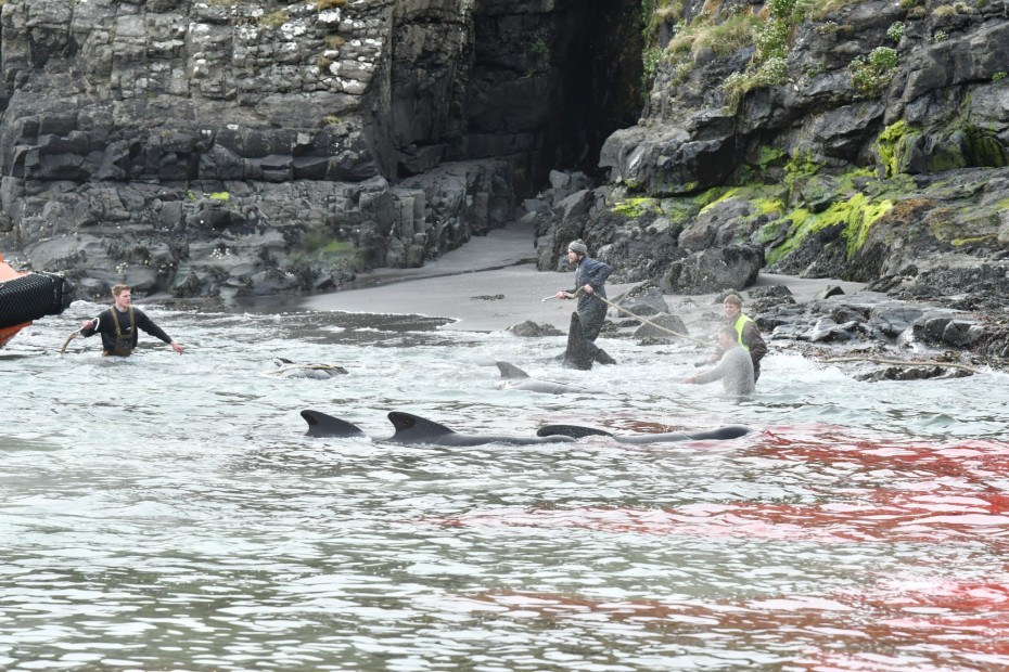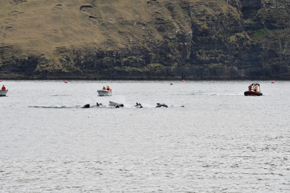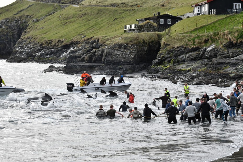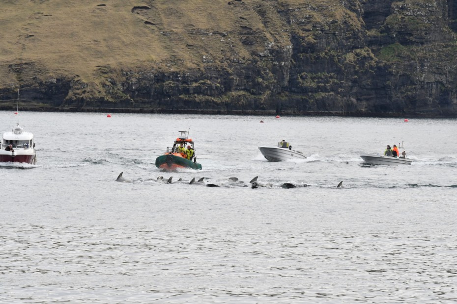 Berichten zufolge wurden in der Bucht von Bøur 55 Langflossen-Pilotwale (Delfine) massakriert. Viele kleineren modernen Schnellbooten starteten die grausame Treibjagd in der Nähe von Mykines und terrorisierten die Delfine an den Strand von Bøur . Die Delfinfamilie wurde vom färöischen Fischereipatrouillenschiff Brimil entdeckt. Die Besatzung der Brimil meldete die Sichtung den Behörden, die kurz darauf noch am späten Sonntagabend eine "Meute" für das Delfinmassaker mobilisieren konnte.