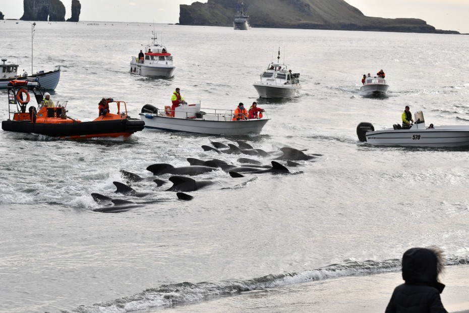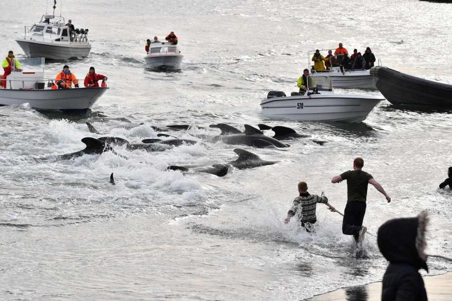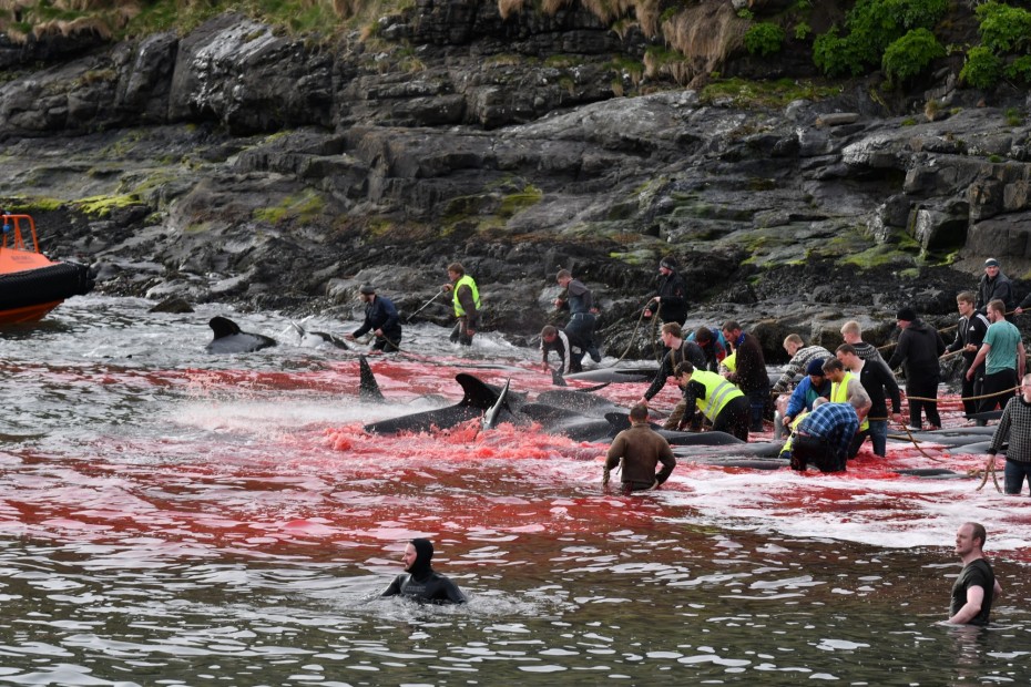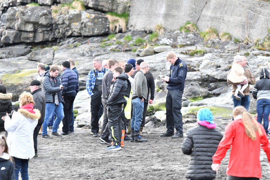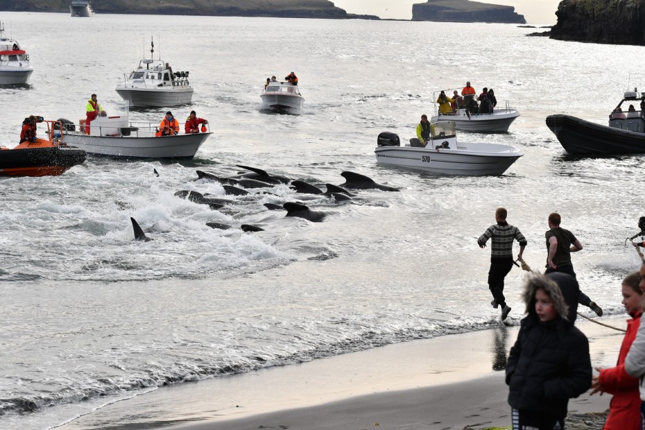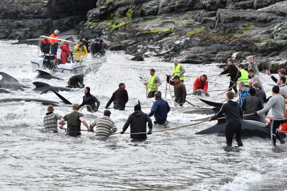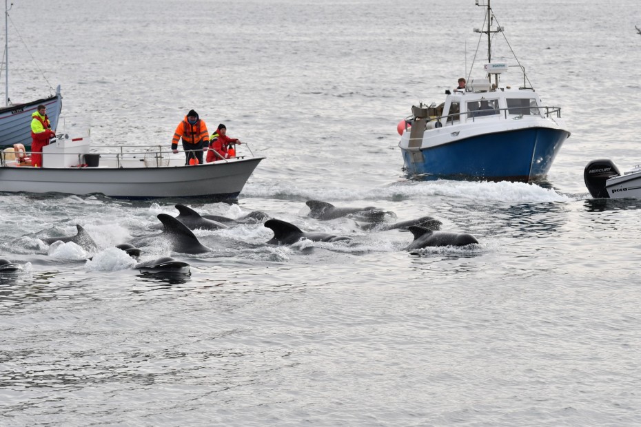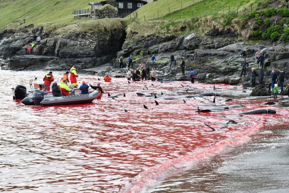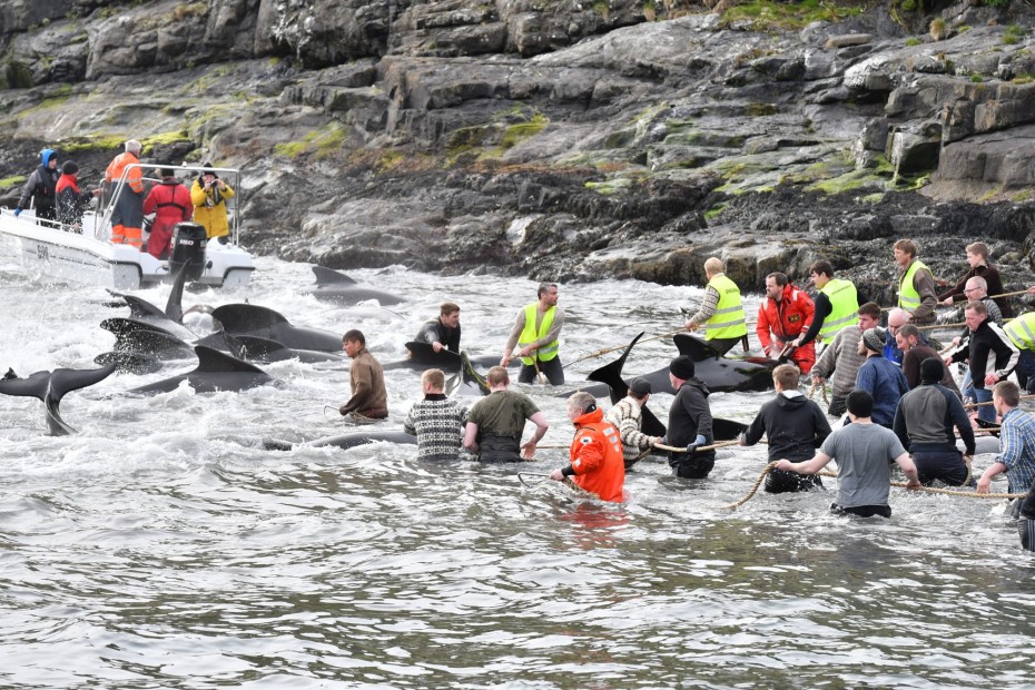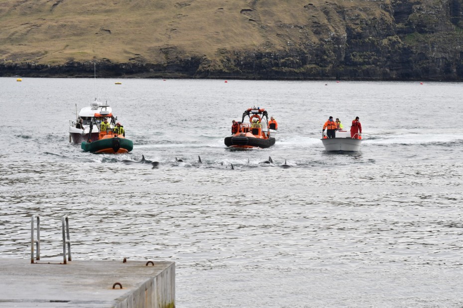Berichten zufolge wurden in der Bucht von Bøur 55 Langflossen-Pilotwale (Delfine) massakriert. Viele kleineren modernen Schnellbooten starteten die grausame Treibjagd in der Nähe von Mykines und terrorisierten die Delfine an den Strand von Bøur . Die Delfinfamilie wurde vom färöischen Fischereipatrouillenschiff Brimil entdeckt. Die Besatzung der Brimil meldete die Sichtung den Behörden, die kurz darauf noch am späten Sonntagabend eine "Meute" für das Delfinmassaker mobilisieren konnte.