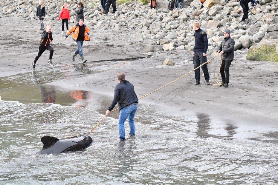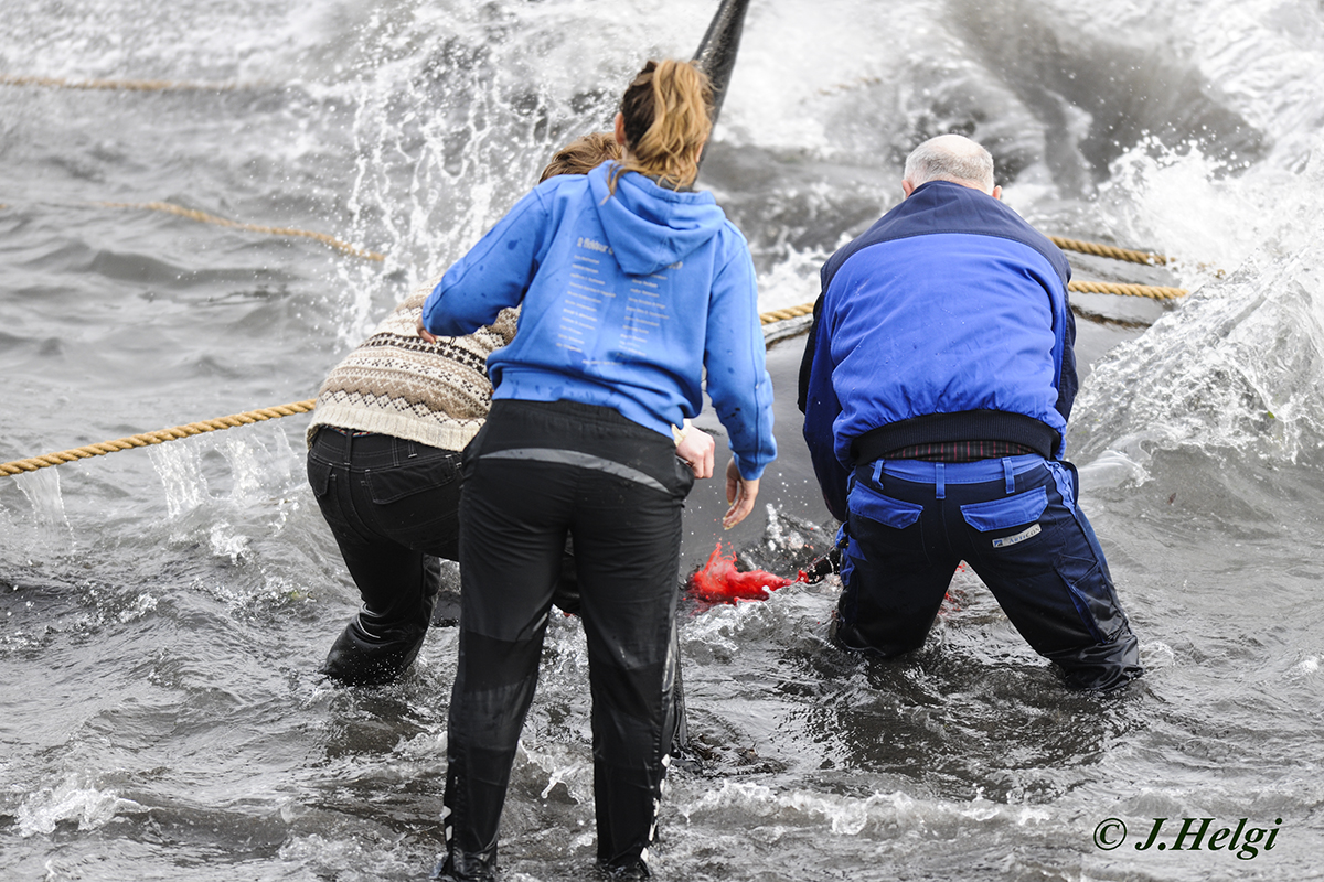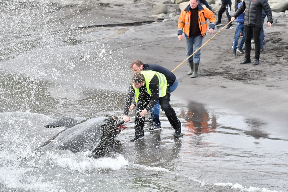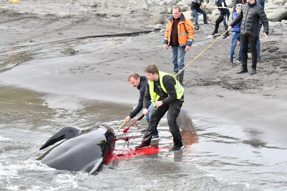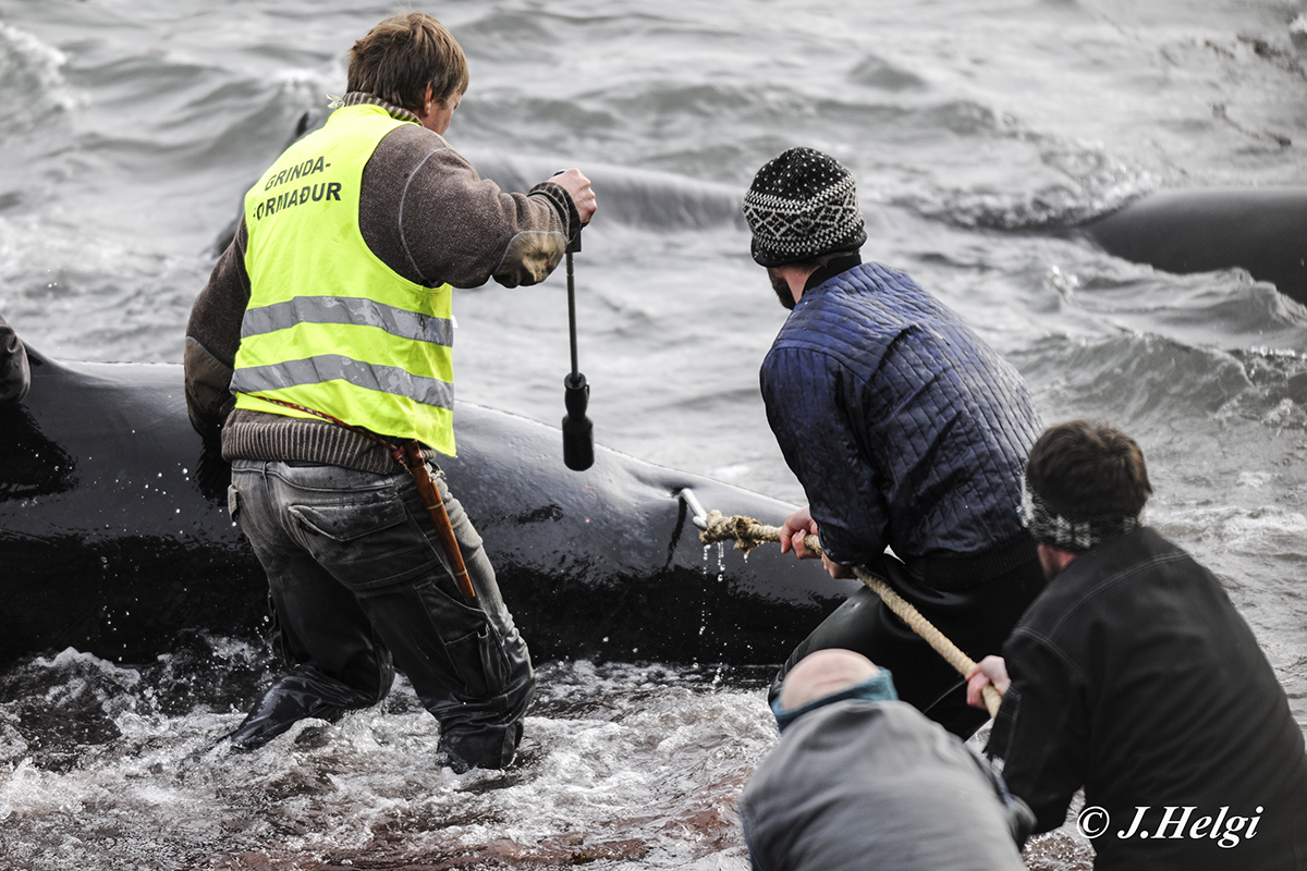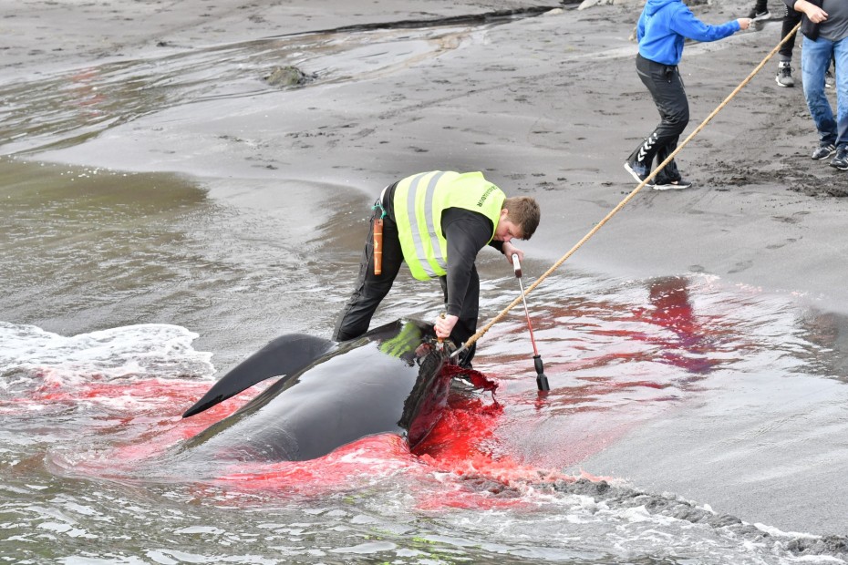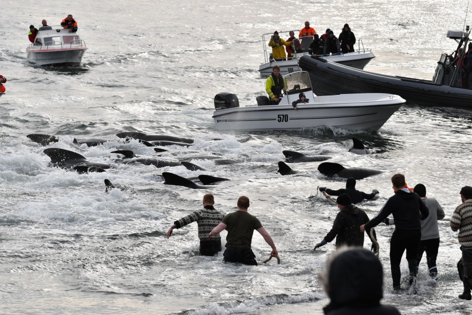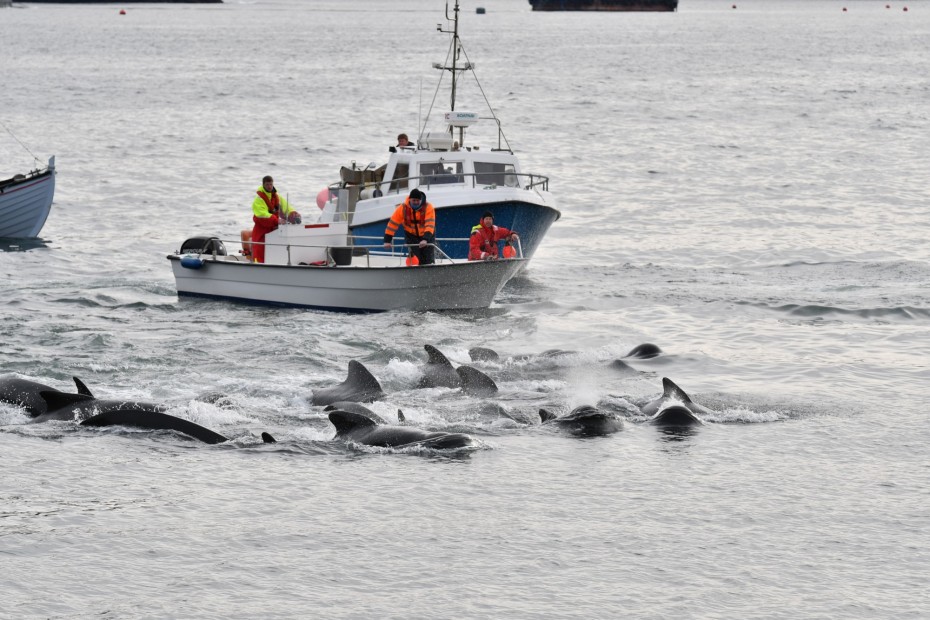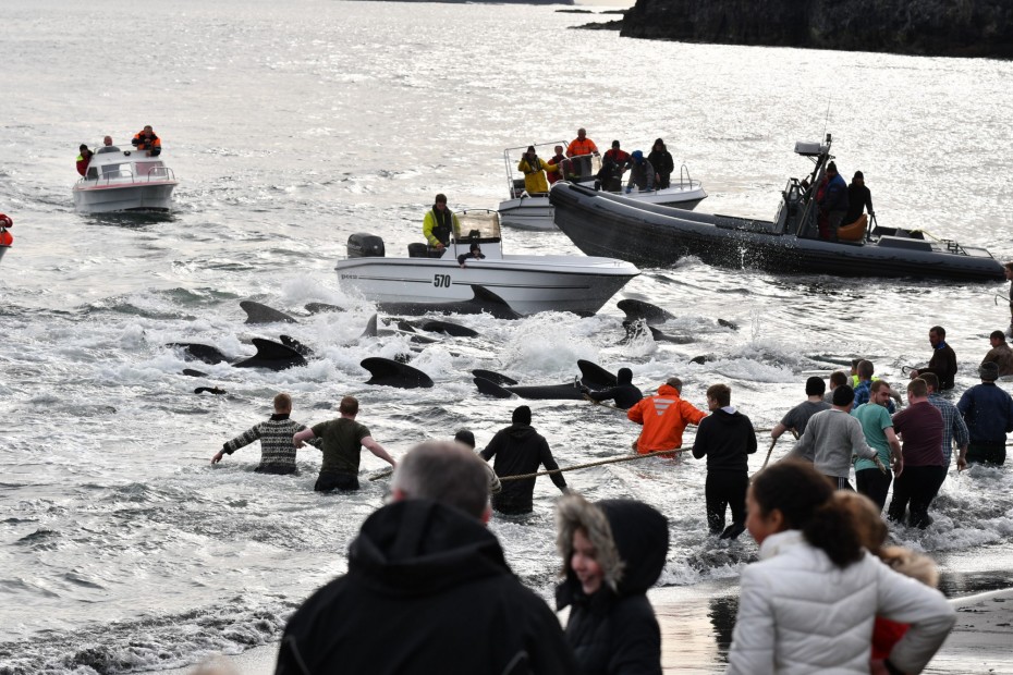 Berichten zufolge wurden in der Bucht von Bøur 55 Langflossen-Pilotwale (Delfine) massakriert. Viele kleineren modernen Schnellbooten starteten die grausame Treibjagd in der Nähe von Mykines und terrorisierten die Delfine an den Strand von Bøur . Die Delfinfamilie wurde vom färöischen Fischereipatrouillenschiff Brimil entdeckt. Die Besatzung der Brimil meldete die Sichtung den Behörden, die kurz darauf noch am späten Sonntagabend eine "Meute" für das Delfinmassaker mobilisieren konnte.