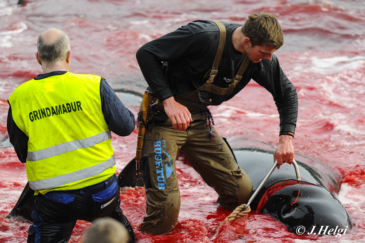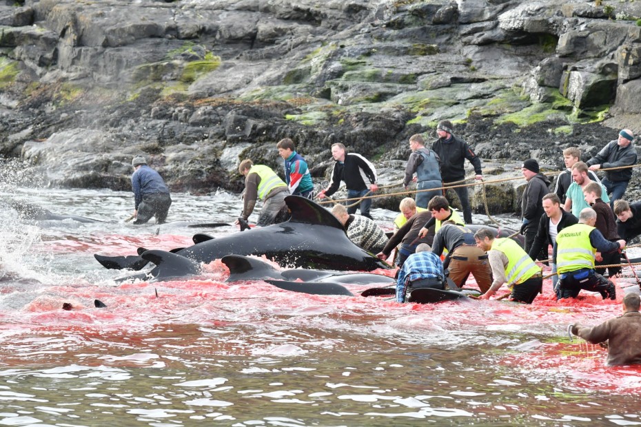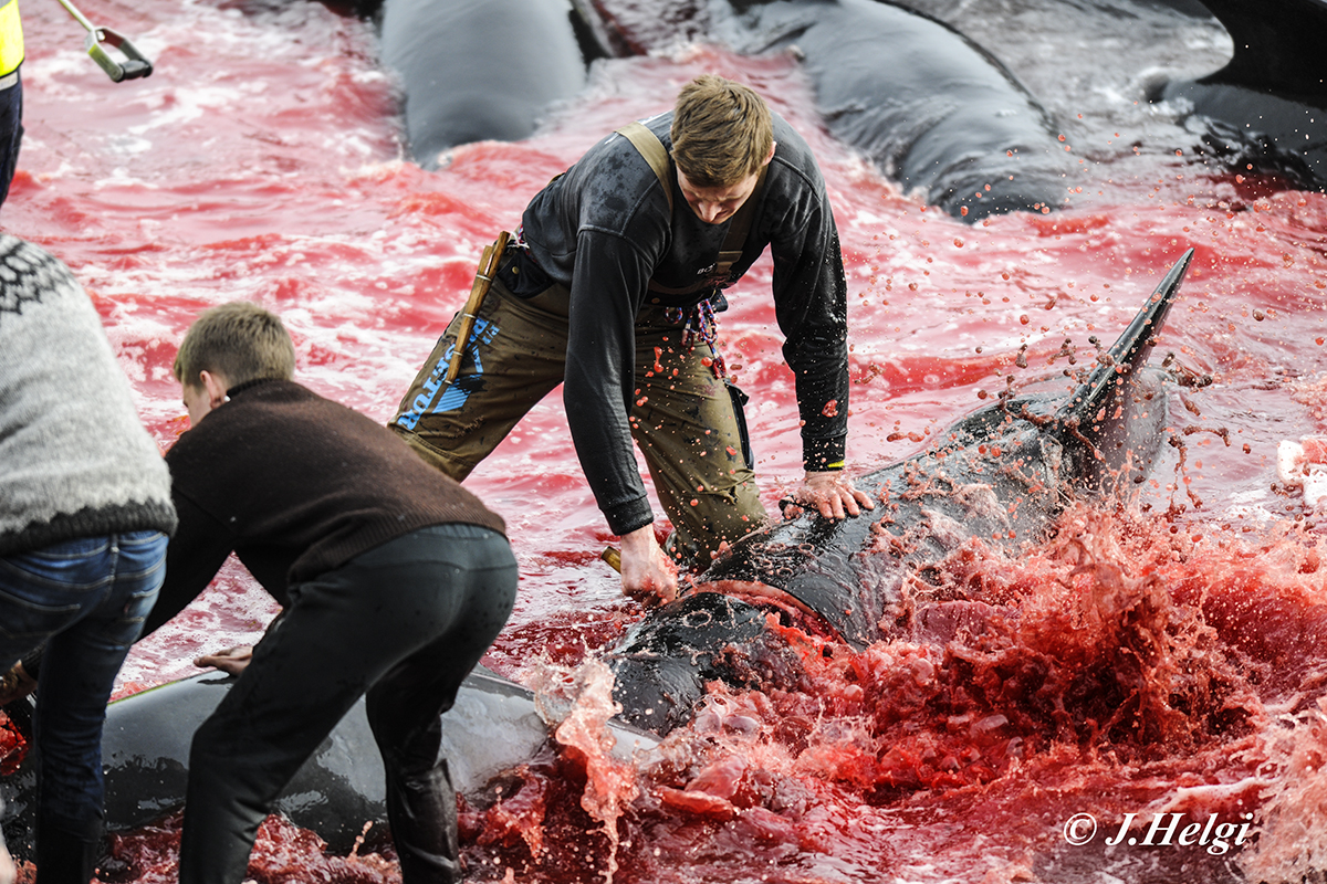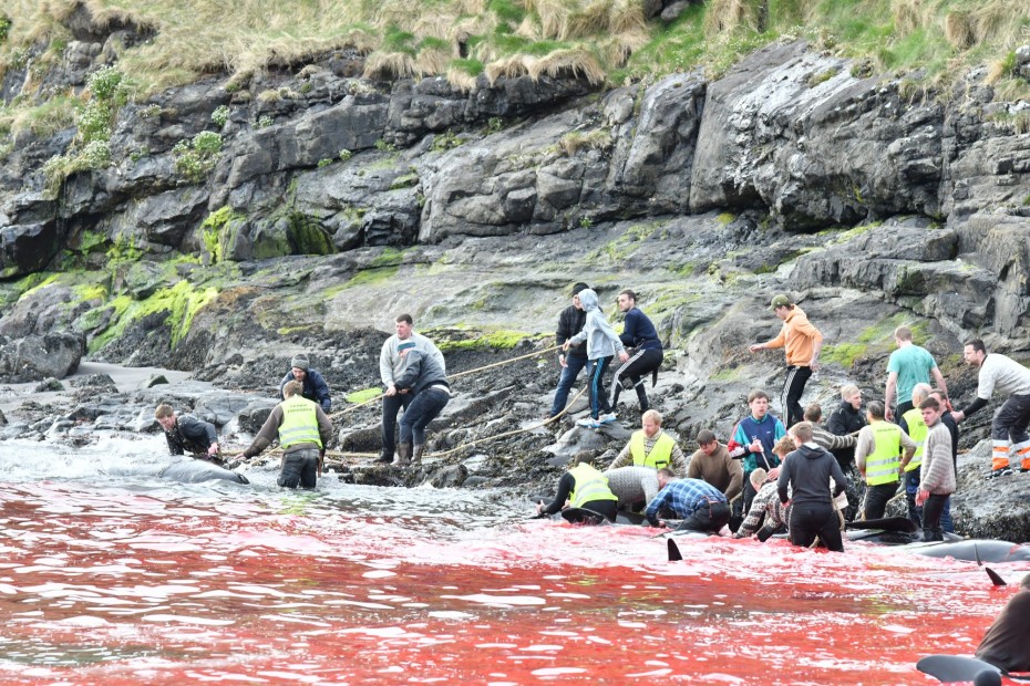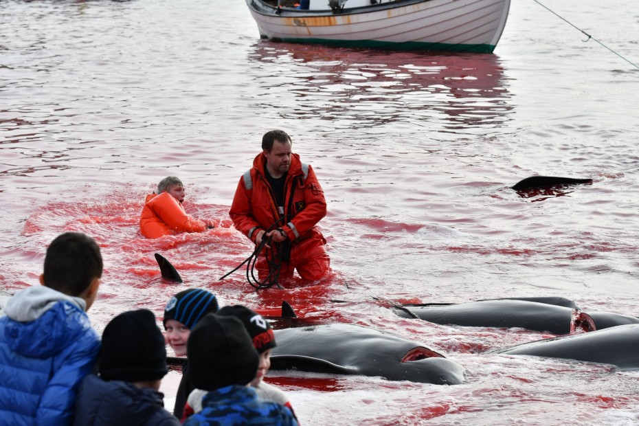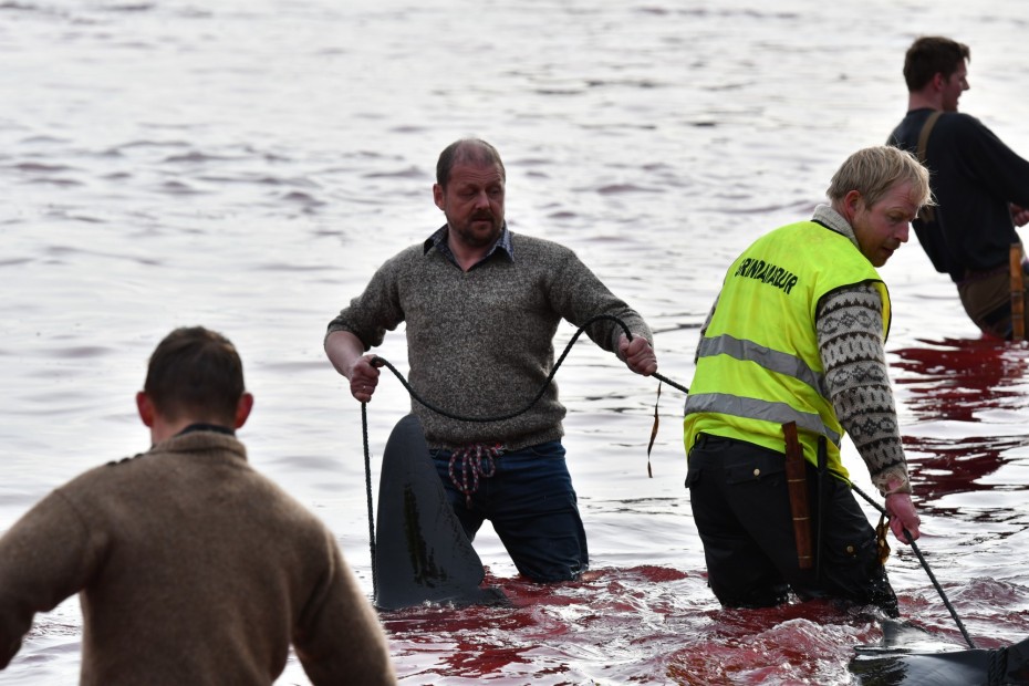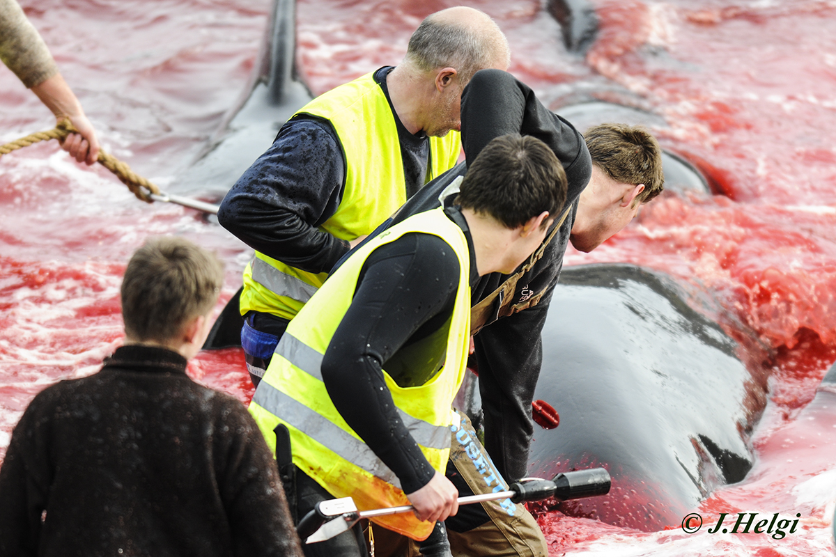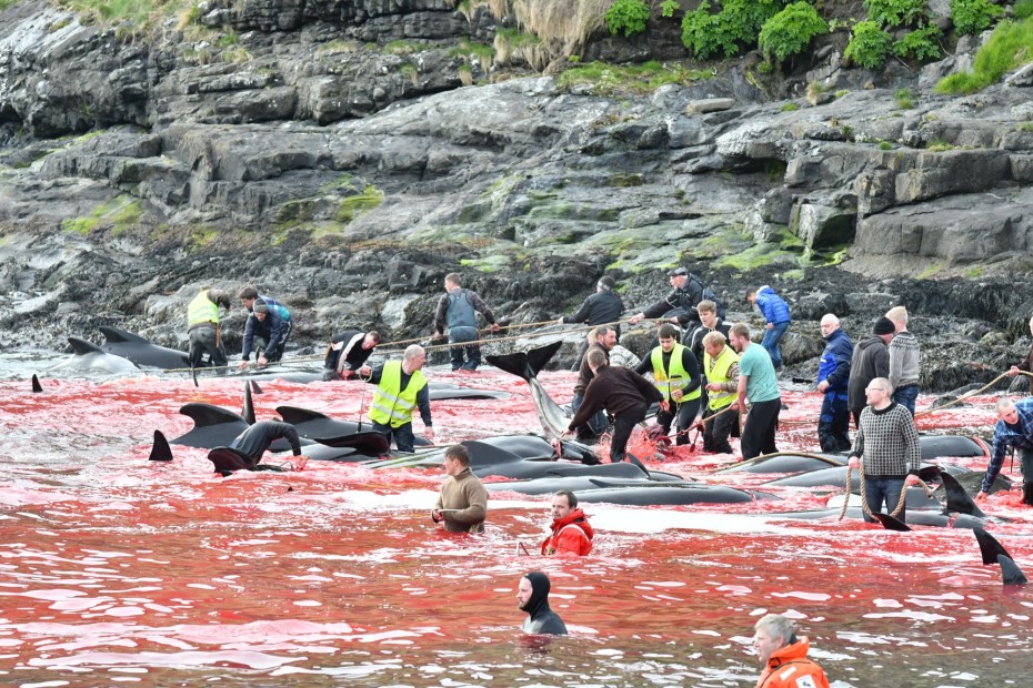 Indische Touristen waren am Delfin Massaker anwesend. Wir wissen nicht wie sie darauf reagierten, jedenfalls machten sie Fotos während des grausamen Mordens. Auch Färöische Frauen mit Kleinkindern waren anwesend, sie machten den Anschein, als würden sie das grausame Blutbad geniessen. Bei den Treibjagden und Tötungen von Delfinen geht es nicht um Nahrungsbeschaffung, es îst ihr tratitioneller Blutsport.