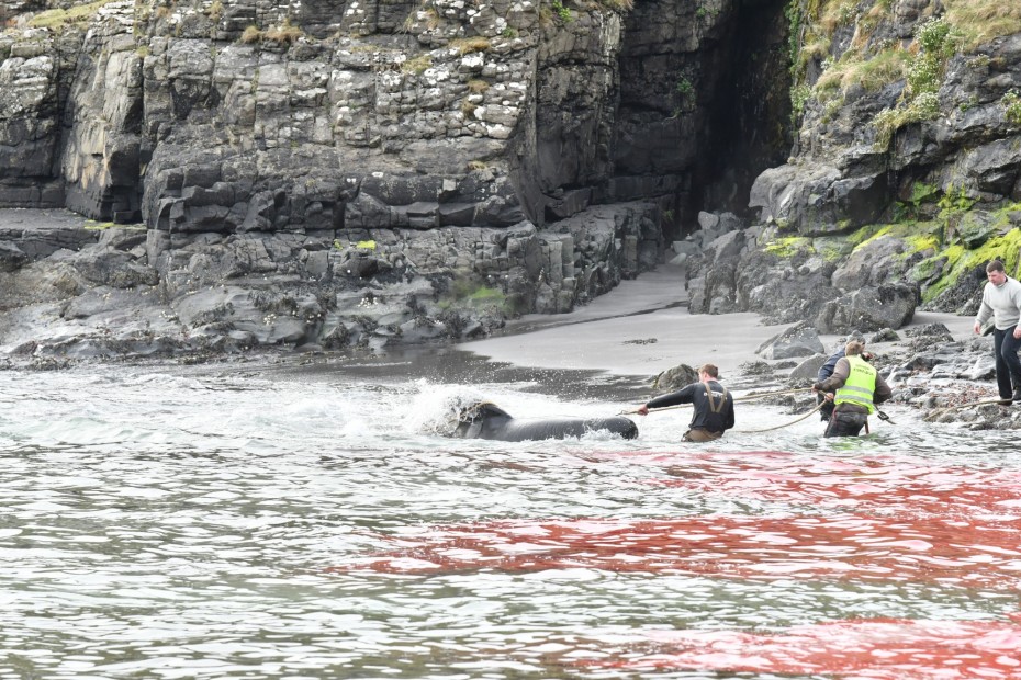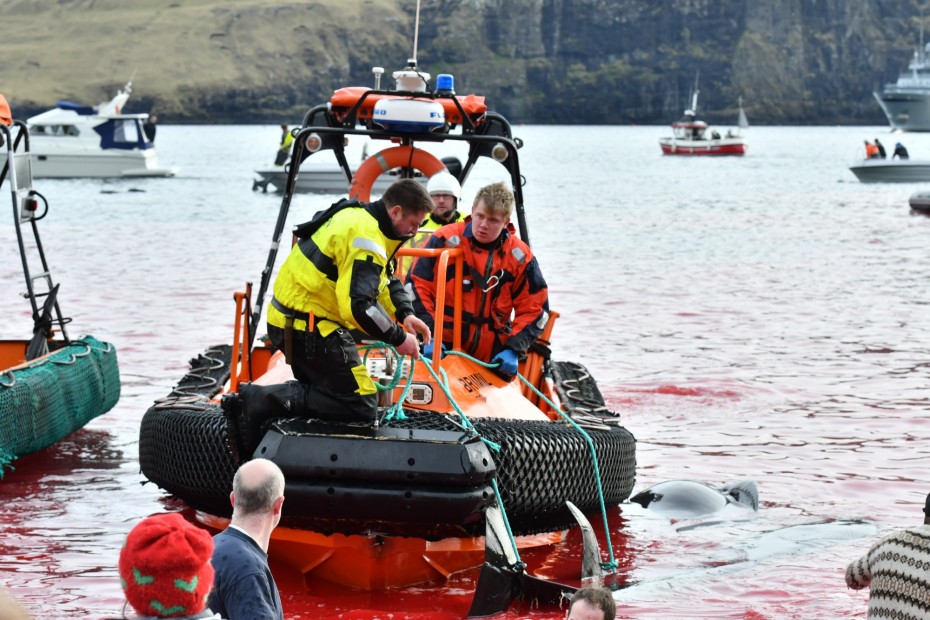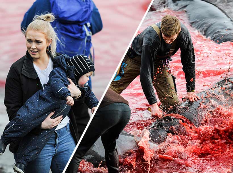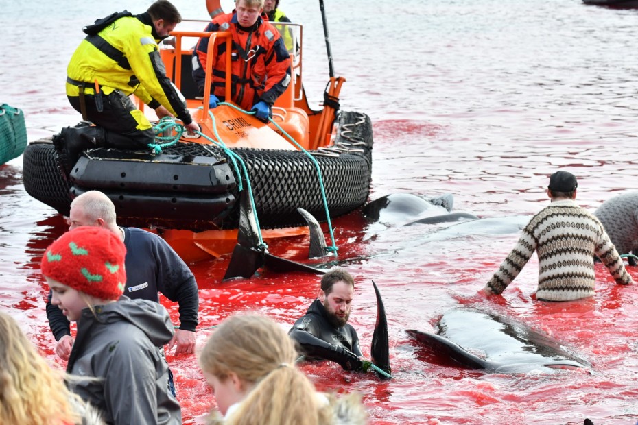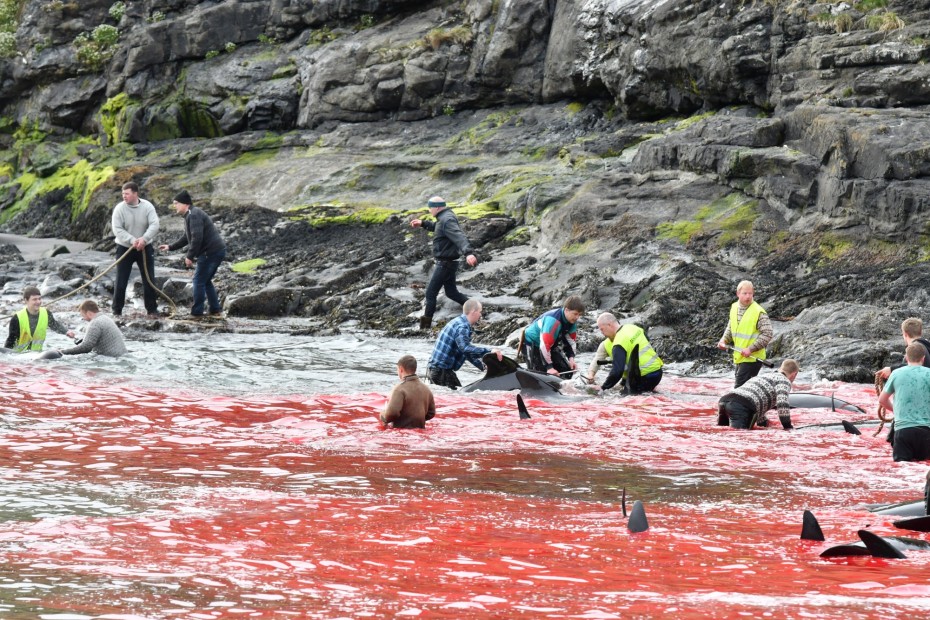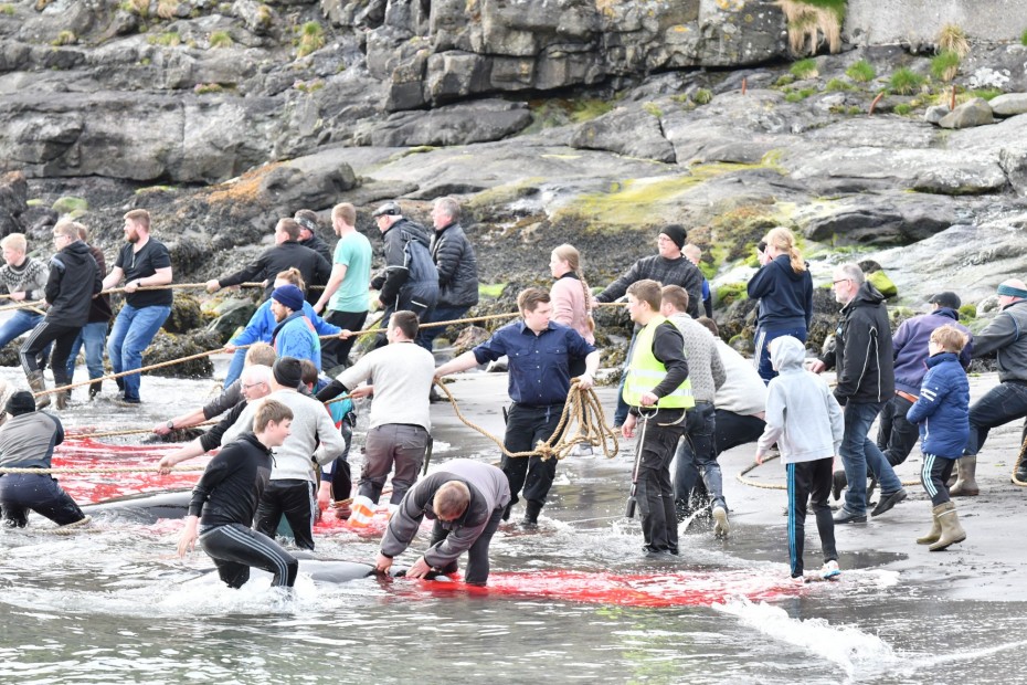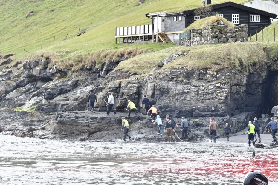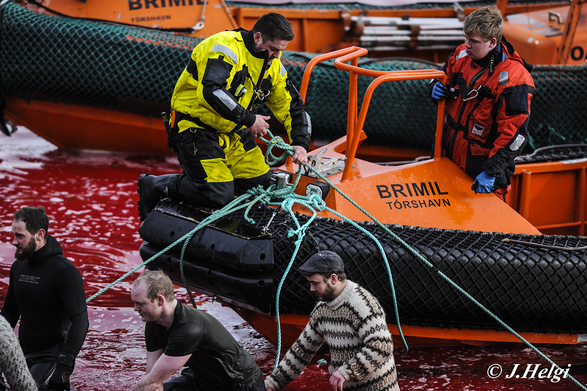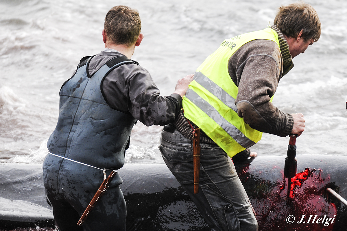 Indische Touristen waren am Delfin Massaker anwesend. Wir wissen nicht wie sie darauf reagierten, jedenfalls machten sie Fotos während des grausamen Mordens. Auch Färöische Frauen mit Kleinkindern waren anwesend, sie machten den Anschein, als würden sie das grausame Blutbad geniessen. Bei den Treibjagden und Tötungen von Delfinen geht es nicht um Nahrungsbeschaffung, es îst ihr tratitioneller Blutsport.