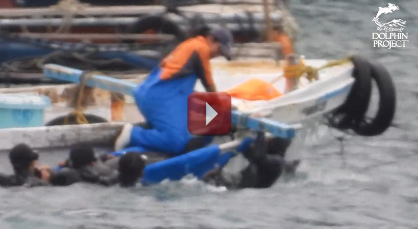 Mit Booten zogen die Killer die ermordeten Delfine an der Schwanzflosse ans Boot gefesselt aus der Bucht heraus zu einem Jagdschiff, das die Leichen ins Metzgerhaus schleppte. Ob jeder dieser Delfine wirklich tot war, das sei dahin gestellt. Nach vielen grausamen Schlachtungen zogen die Killer Delfine hinter sich her, deren Wirbelsäule zwar gewaltsam zerstört wurde, aber immer noch halb am Leben waren. Diese Delfine verloren zappelnd den Kampf gegen das Ertrinken während sie ins Metzgerhaus gezogen wurden.