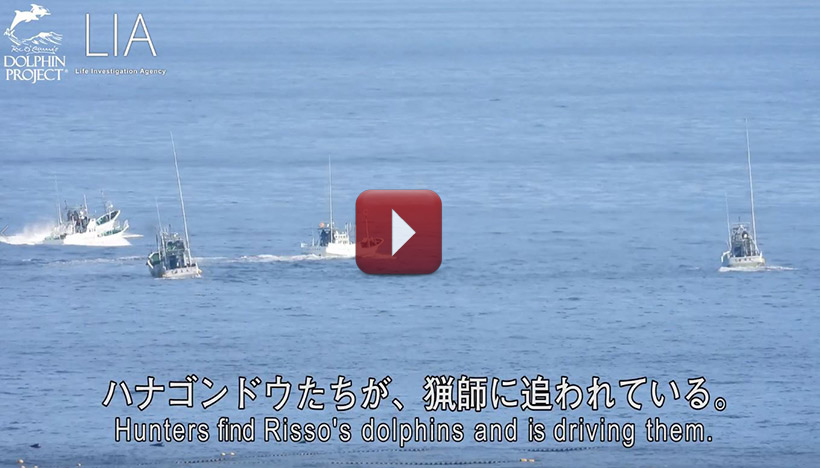 Mit 12 Jagdschiffen und 4 kleineren Motorbooten terrorisierten die japanischen Monster heute drei jugendlichen Risso’s Delfine und eine Mutter mit ihrem Baby über vier Stunden lang in die Bucht, hinter dem Netzen wurden diese wehrlosen Meeressäuger nochmals eine halbe Stunde lang mit grösster Gewaltanwendung misshandelt und letztendlich an den Strand gezwungen und niedergestochen. Diese Delfine wurden jedes Mal mit extremer Gewaltanwendung von den grossen Jagdschiffen und später zusammen mit den kleineren Booten ständig überfahren sobald sie nach dem Verstecken unter Wasser wiederauftauchten.
