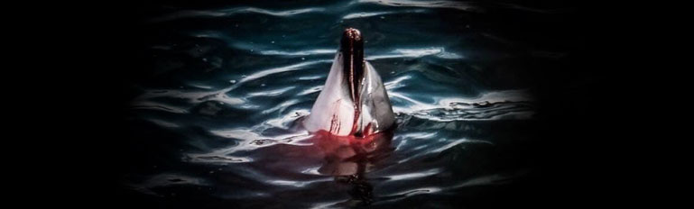 Eine Familie von schätzungsweise 8-10 Streifendelfinen wurde heute in die Bucht getrieben. Trotz der grossen letzten Bemühungen der Jäger, kurz vor dem Einbringen des Netzes in die Bucht, die hart um die Freiheit kämpfende Delfinfamilie entkommen zu lassen, terrorisierten die Jäger mit ihren Schiffen und die Killer mit ihren Booten besonders intensiv und aggressiv mit unvorstellbar grosser Gewalt weiter auf die Delfine ein, verfolgten sie so lange, bis alle Mitglieder dieser Familie unter die Planen geschoben und niedergestochen wurden.