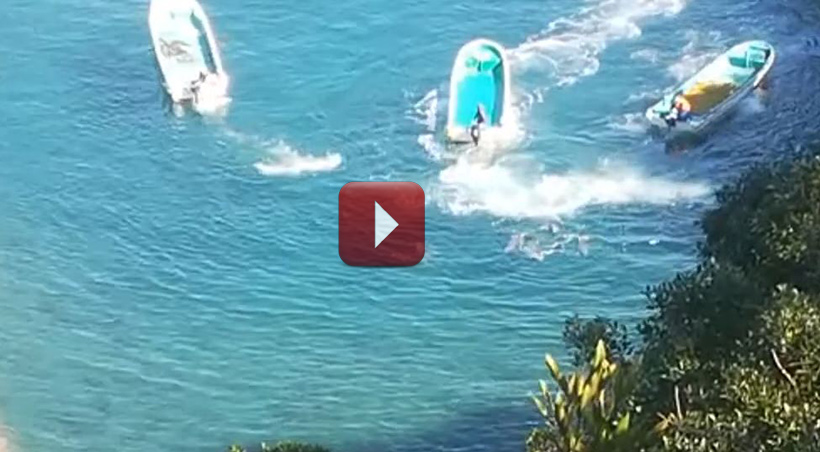 Livestream Video by Ren Yabuki -Taiji Japan, 5. November 220: Säugender Streifendelfin Kindergarten in die Bucht getrieben