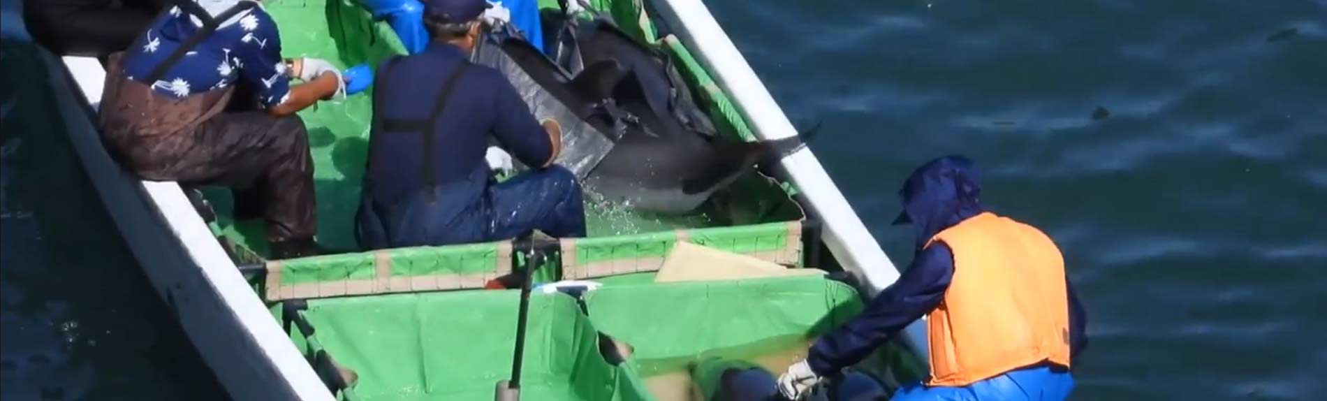 Jagdflotte von 12 Schiffen verliess den Hafen am frühen Morgen um ca. 05:30 Uhr, nach einer vergangenen Stunde kam die Meldung von Mineto Meguro und Ren Yabuki, dass die Jagdflotte eine grosse Delfinfamilie terrorisierte. Eine Stunde später ungefähr 500 Meter vor dem Ufer, schlossen sich vier weiter kleinere Boote mit Killern der Tortur-Maschinerie an. Die Killer auf den kleineren Booten bewarfen die Delfine mit einem an einer Schnur befestigten Eisengewicht, an deren Ende ca ein 15-20 cm langer spitziger Eisennagel aufgesetzt ist, um die Delfine einzuschüchtern und absichtlich zu verletzen.