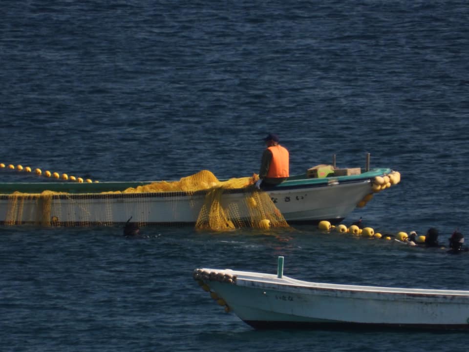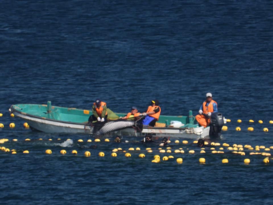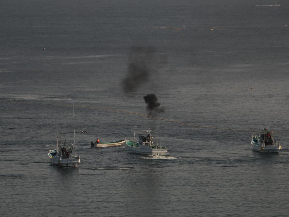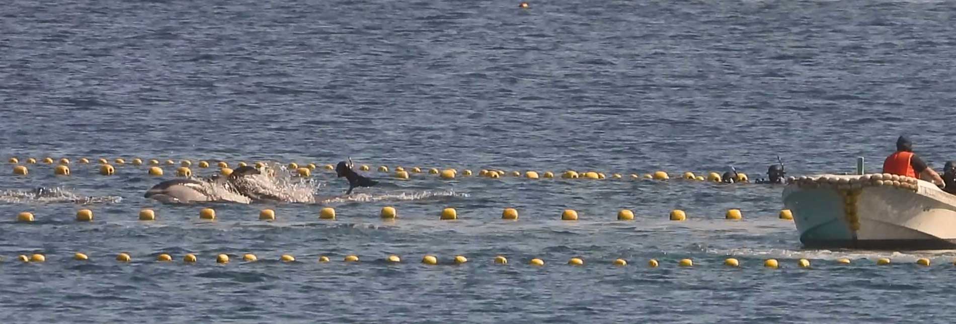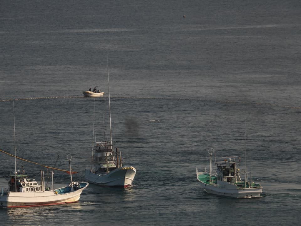 Ein paar wenige Delfine wurden offshore, etwa 600 Meter draussen vor der Bucht mit einem Netz eingekreist. Im Hintergrund sahen wir in Kunito’s Livestream die grosse Gruppe in Richtung Ozean flüchten. Nach erster Einschätzung könnten über 50 Weissseiten Delfine im Netz eingesperrt sein. Wie viele es aber wirklich sind und wie viele von ihnen für die Delfinindustrie entführt werden, erfahren wir erst später.
