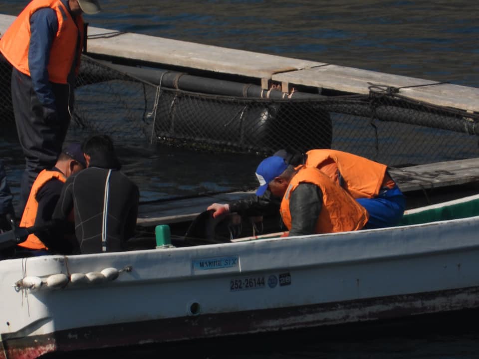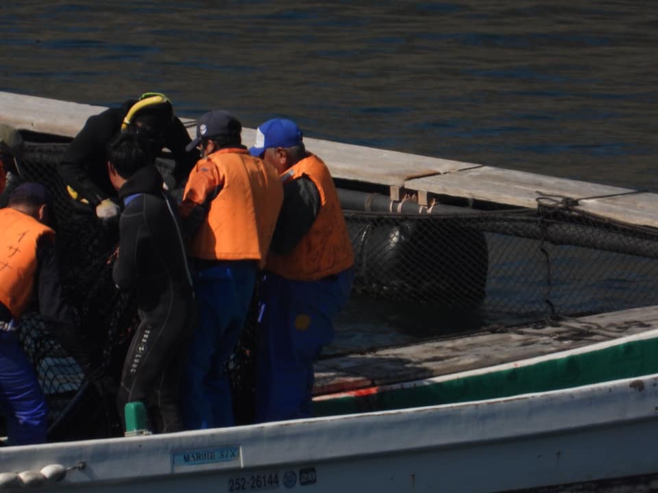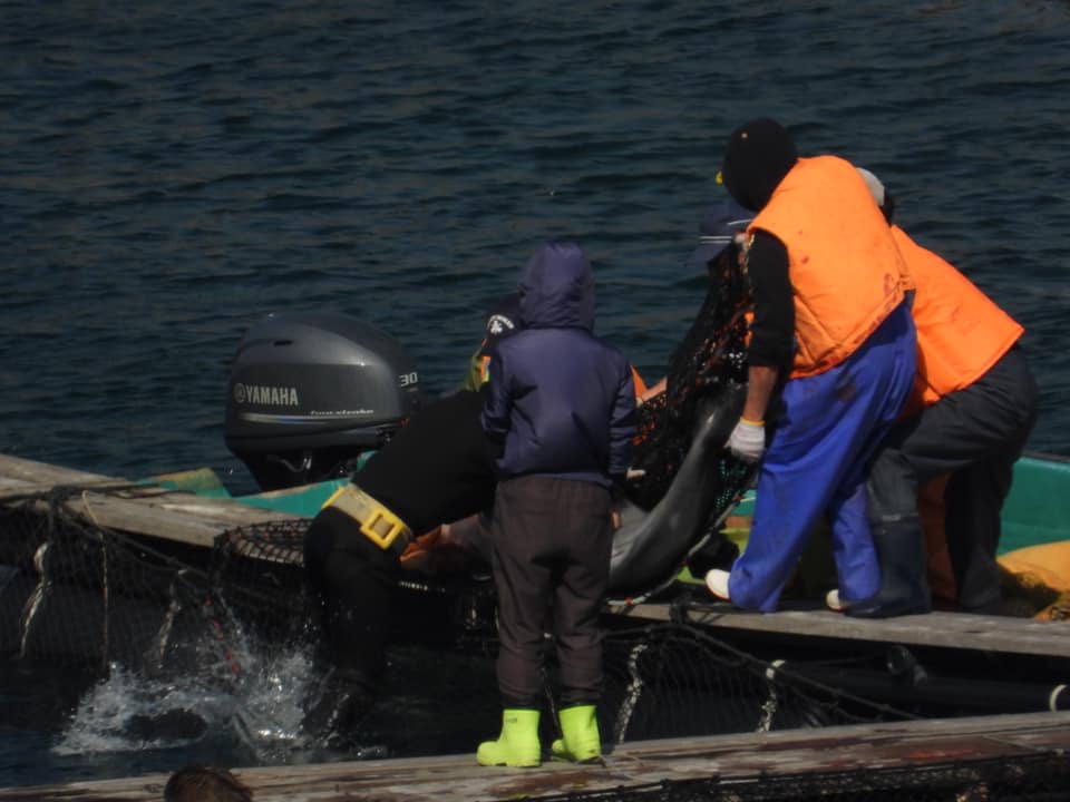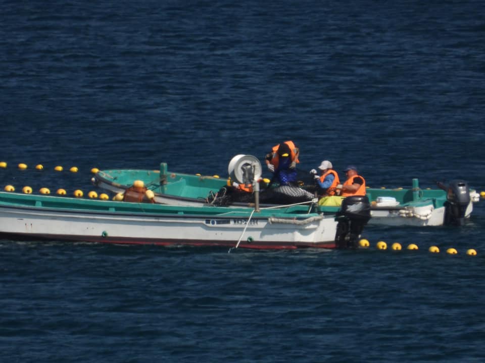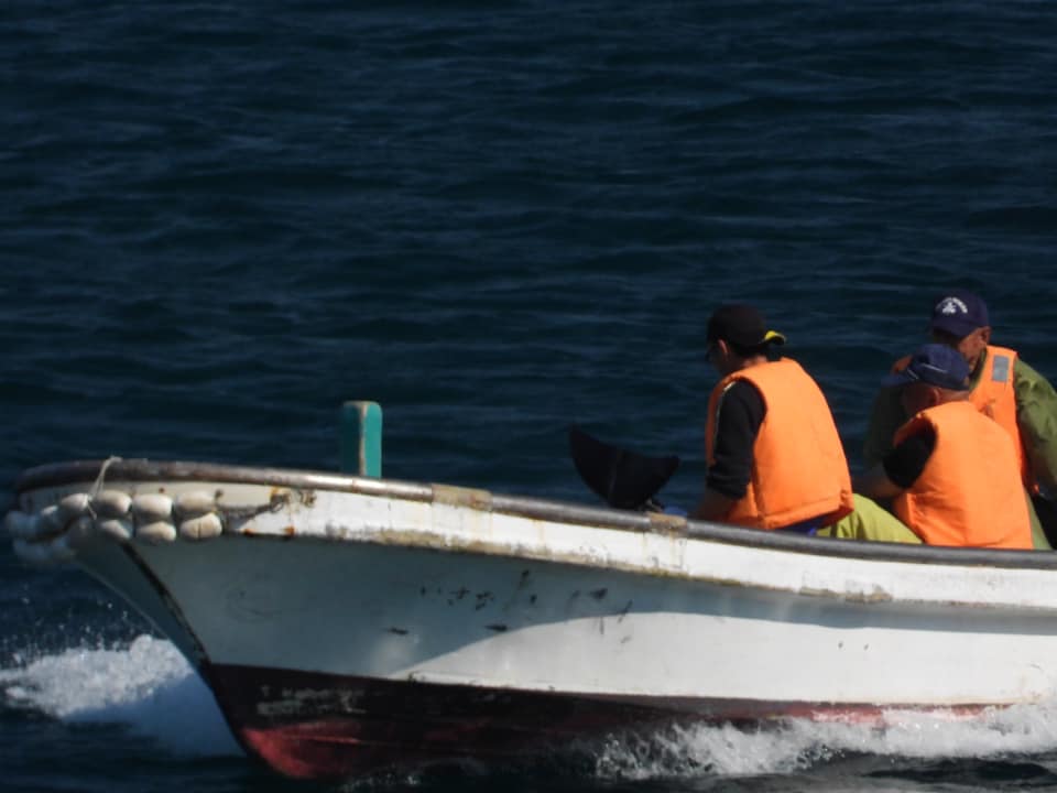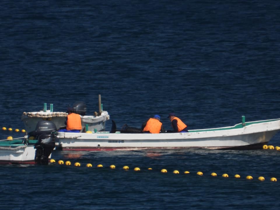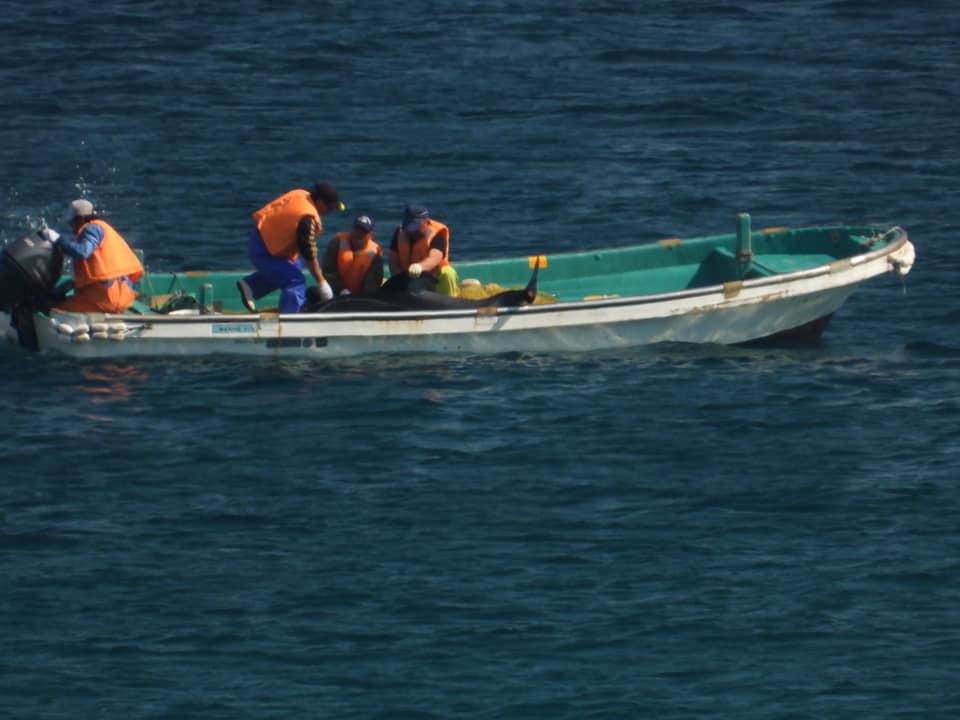Ein paar wenige Delfine wurden offshore, etwa 600 Meter draussen vor der Bucht mit einem Netz eingekreist. Im Hintergrund sahen wir in Kunito’s Livestream die grosse Gruppe in Richtung Ozean flüchten. Nach erster Einschätzung könnten über 50 Weissseiten Delfine im Netz eingesperrt sein. Wie viele es aber wirklich sind und wie viele von ihnen für die Delfinindustrie entführt werden, erfahren wir erst später.