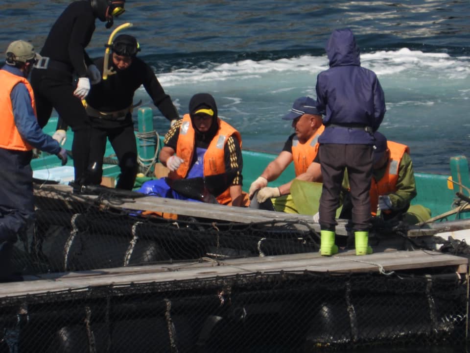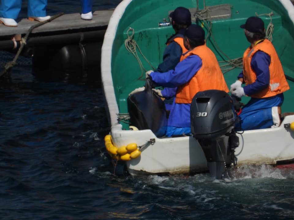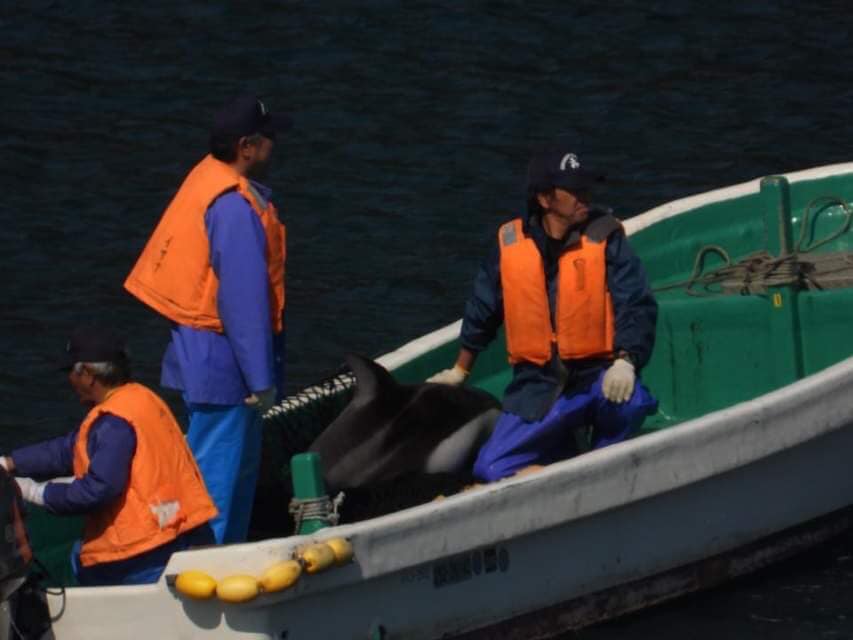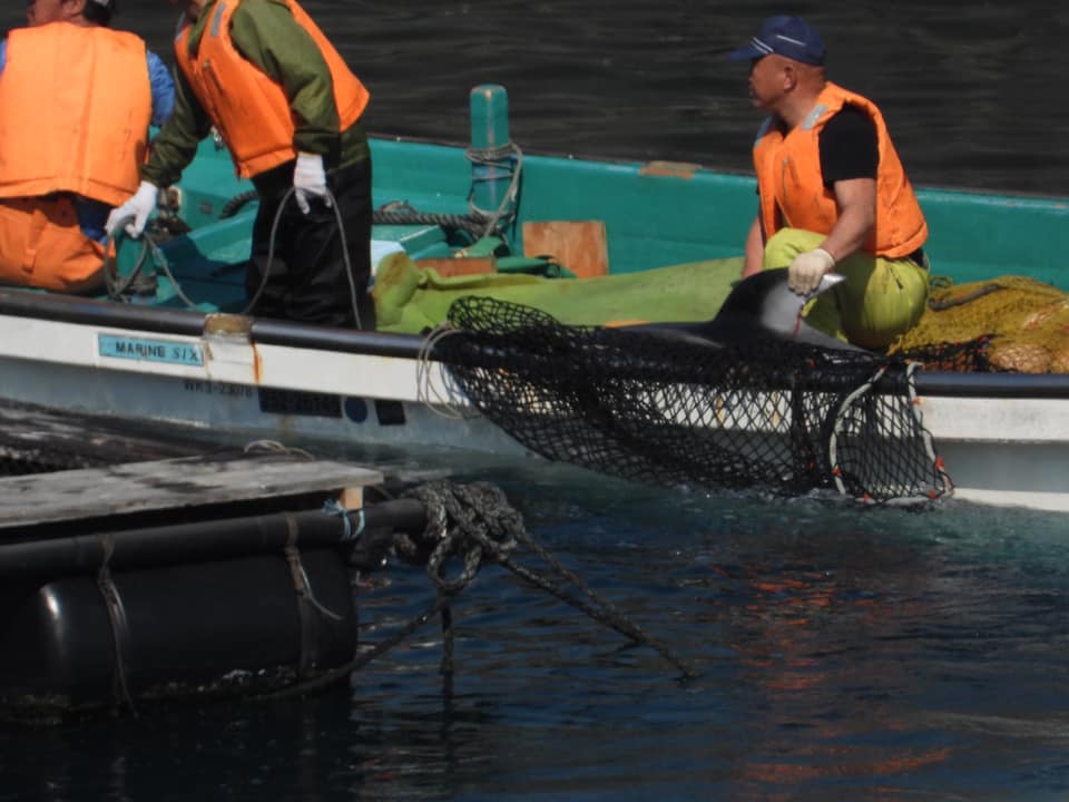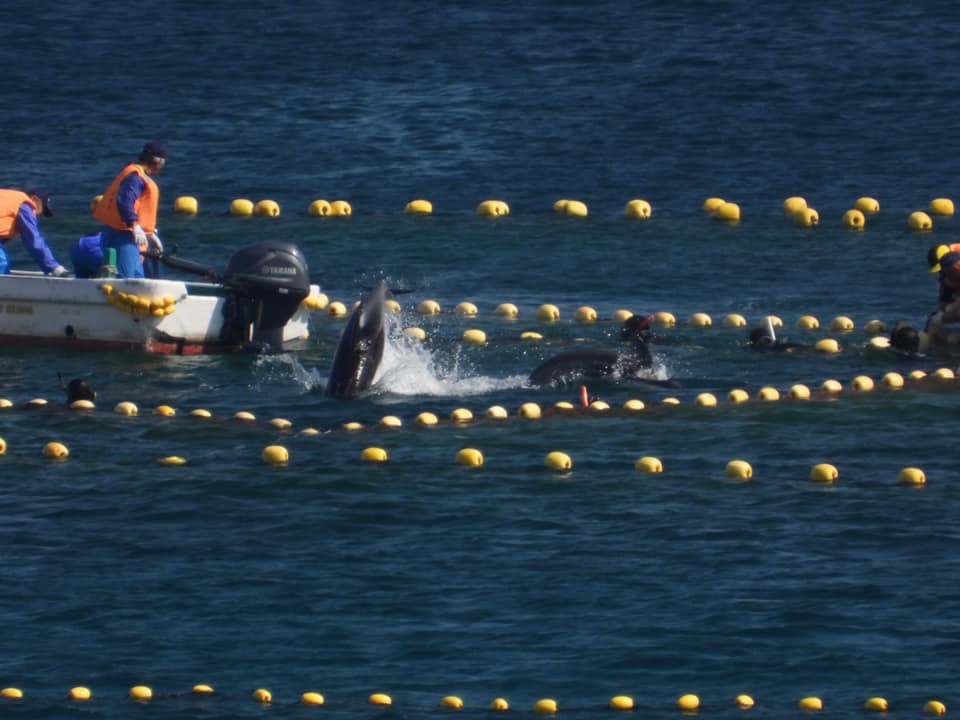 Die Entführungen der auserwählten Delfine, meist Kinder, hatte etwa eine Stunde nach der Treibjagd und Einnetzung begonnen. Die Delfine gerieten in extreme Panik, als Tauche sie packten, wie im Wrestling mit ihnen ringten und zu den Booten in die Netze geschoben wurden. Kunito hatte viele Fotos geschossen, darauf sind viele blutende, verletzte Delfine sind zu sehen. Diese Verletzungen wurden ihnen während der brutalen Gewalt der Treibjagd und Wrestling im Netz zugefügt. Viele Delfine wurden entführt, sechs Stunden waren bereits vorbei, berichtete Dolphin Project, fuhren immer noch Boote, beladen mit entführten, blutenden und zappelnden Delfinen, in den Hafen zu den Käfigen und zurück zum Netz.