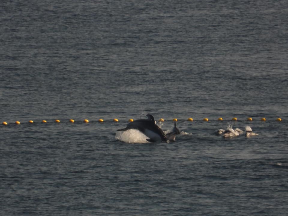 Viele Delfine waren durch die Misshandlungen verletzt, die meisten hatten blutende Wunden. Wir können nur Mutmassen warum diese wervollen Delfine wieder ins Meer hinausgebracht wurden. Kunito filmte heute Morgen wie die Killer offensichtlich nervös bei allen Käfigen im Hafen rumhantierten. Vielleicht wurde die Bestellung storniert, die Delfine waren zu gross oder zu verletzt, was auch sein kann, auf die Nervösität der Killer gezogen, dass diese Weissseiten Delfine möglicherweise krank waren, vielleicht infiziert mit dem hochansteckenden Morbilivirus. Dieses Virus ist unter Delfinen hochansteckend und sehr oft tödlich. Zwischen 2012 und 2015 starben über 1,2 Millionen an diesem Virus, und es tötet auch heute noch. Es ist nur eine Frage der Zeit bis es wieder richtig zuschlägt. Nur so eine Möglichkeit und weitere Mutmassung, aber ich hoffe nicht. Ren geht dem Grund nach und wenn er herausgefunden hat, warum die Delfine ein Tag später wieder ausgesetzt wurden, werde ich berichten.
