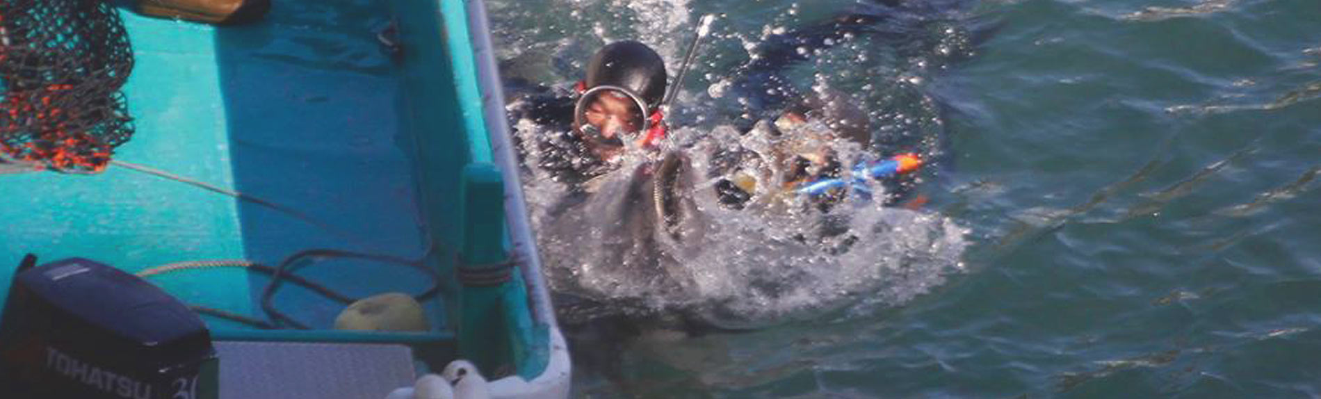 Taucher griffen hart nach den für die Gefangenschaft auserwählten Delfinkinder. In einer Art Wrestling schoben und drückten sie die Delfine vor sich hin in ein Netz, das an den Booten heruntergelassen wurde. Mehrere Killer zogen das Netz an sich und schleppten die zappelnden Delfinkinder unter die Planen zu den Trainern die über Gefangenschaft oder Freiheit entschieden.