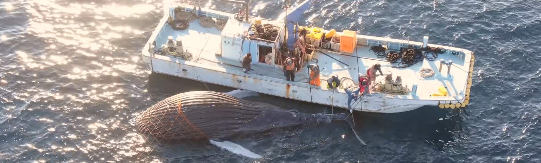 ザトウクジラ。ミンククジラの”HOPE”が入った同じ定置網に絡まり溺れ死ぬ