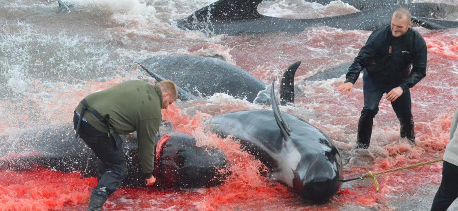 Färöer Inseln: Gestern Samstag Abend wurde eine Delfinfamilie Stunden lang mit 50 Booten und Luxusjachten terrorisiert, gequält und überfahren. 20 Delfine wurden wegen der Fischereiindustrie im sadistischen Färöer Blutsport hingerichtet weil sie den "Fisch der Färöer" gegessen haben.