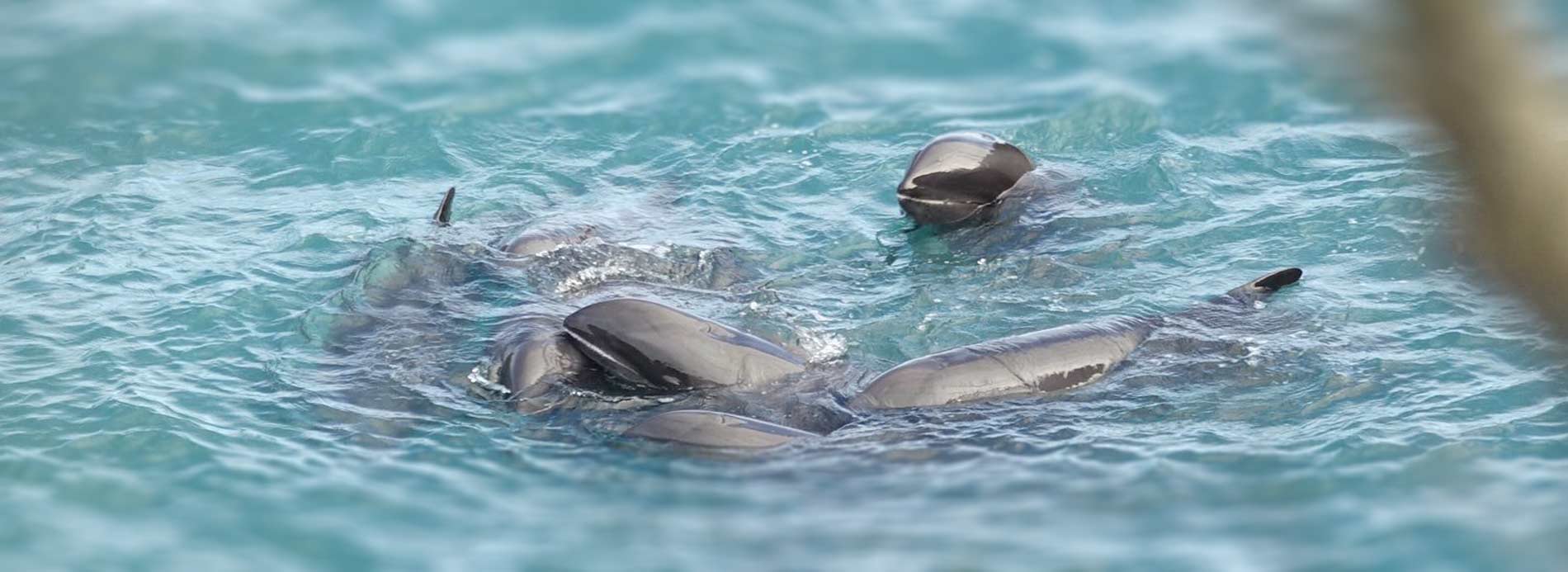 Bild: Breitschnabeldelfine flohen in grösster Angst und Panik durch die Gewaltanwendung der japanischen Mörder in das Netz und blieben darin eine Zeit hängen