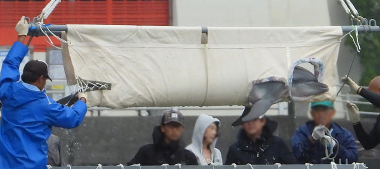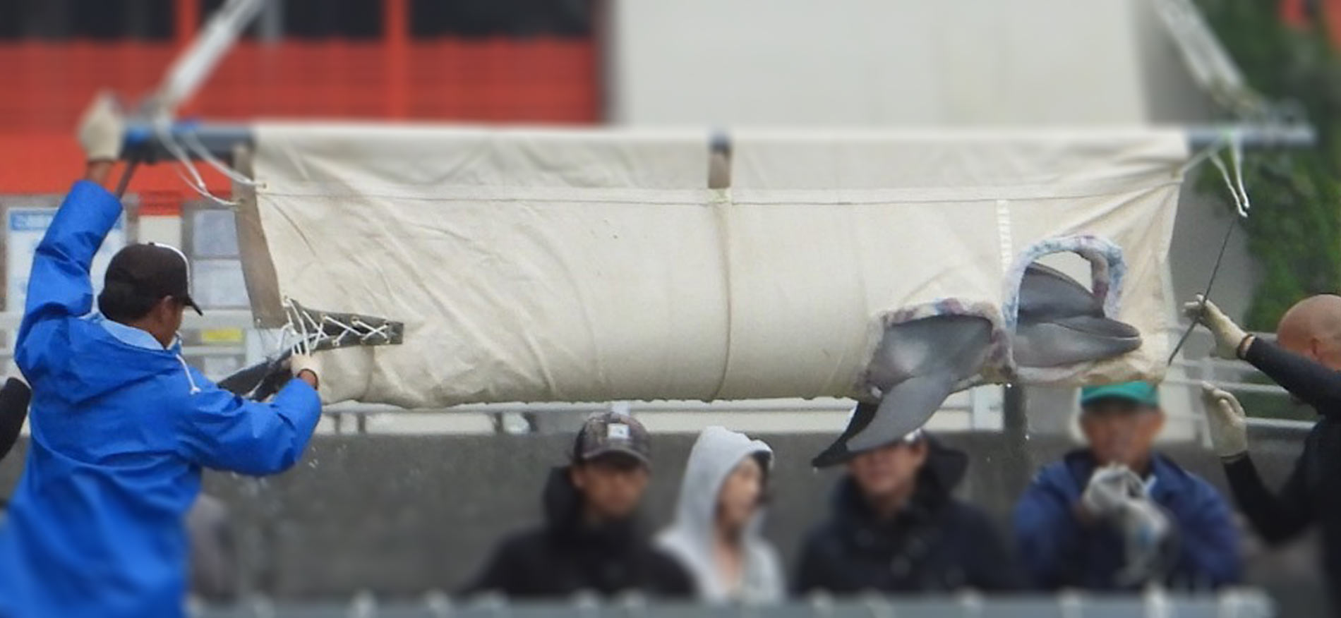 Die Gruppe grosser Tümmler, die gestern in die Bucht getrieben wurden, musste heute den brutalen Auswahlprozess ertragen. Als die Delfine gruppenweise mit Motorbooten in flaches Wasser gezwungen wurden, kam Panik auf, viele flüchteten in die Netzen und verhedderten sich. Taucher stürmten auf sie los und ringen sie zu Booten, die darauf warteten, die wehrlosen Meeressäuger Kinder zur Inspektion unter die Planen zu schleppen. Diejenigen die als nicht für Gefangenschaft geeignet angesehen wurden, also nicht jung und schön genug, wurden in ein Netz auf der linken Seite der Bucht hinein terrorisiert. 19 Delfinkinder wurden von ihren Müttern gestohlen und in die Delfinarien-Gefangenschaft entführt. Diese 19 Delfine füllen die Kasse der Taiji Delfinmafia mit mindesten 3 Millionen USD, wenn sie an Delfinarien oder Schwimmen mit gefangenen Delfinen verkauft werden