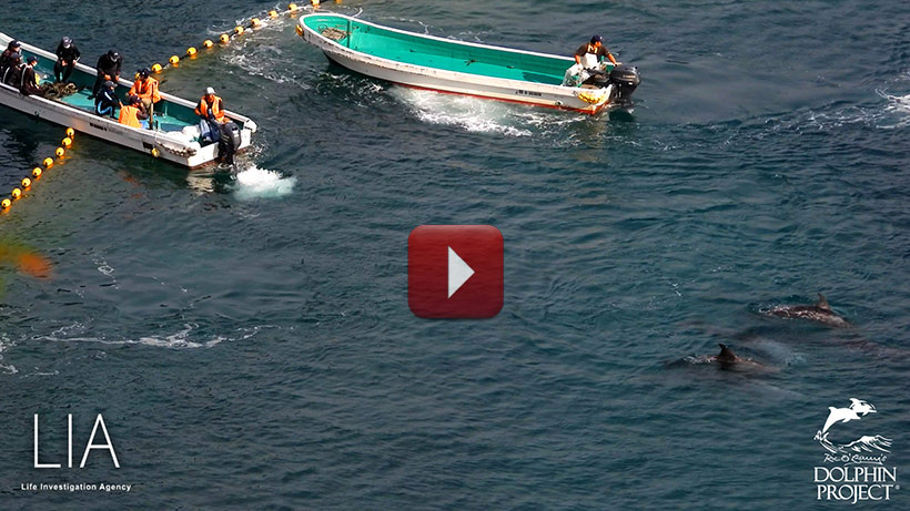 Ungefähr anderthalb Stunden nach dem die Killerflotte von 12 jagdschiffen den Hafen verliessen, meldete Ren Yabuki, dass ein Formation sich gebildet hat und gerade eben eine Treibjagd stattfindet. Fischer setzten vor der Küste neue Netze aus, dies verwirrte die Delfine, hinter ihnen waren die Verfolger mit ihren lauten Schiffsmotoren und Killer die auf Eisenrohre hämmerten, die an den Jagdschiffen befestigt sind und ins Wasser ragen.