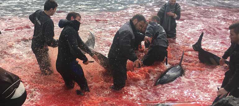 Das brutale Töten von 1428 Weissseiten Delfine war eine illegale Jagd.