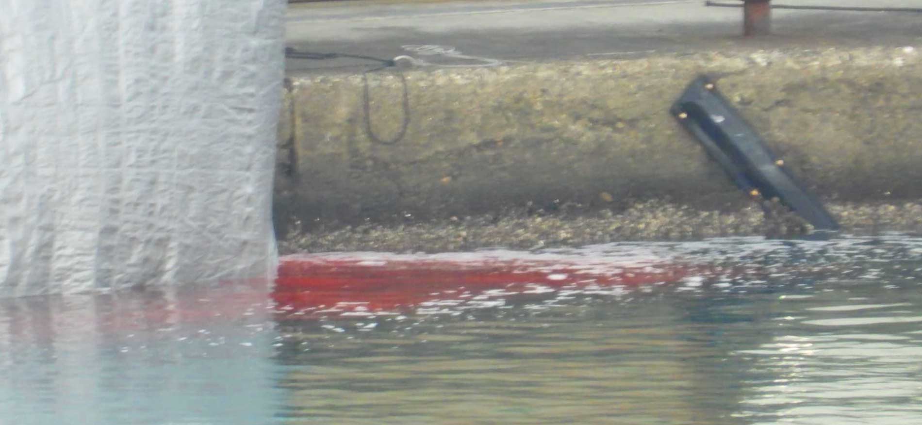 Ein jüngerer Delfin sprang während dem Terror in voller Panik mit dem ganzen Körper auf die scharfen Felsen und stürzt sich danach ins Netz, blieb lange Zeit Unterwasser darin hängen und versuchte immer wieder seinen Kopf aus dem Wasser zu halten um zu atmen. Wir vermuten dass dieser Delfin einer der beiden Toten ist; ertrunken. Auf der anderen Seite des Netzes neben ihm, lagen seine Familienmitglieder im Schockzustand den Bauch nach oben gerichtet, starr an der Wasseroberfläche liegend. Viele Delfine, außerhalb und innerhalb des Netzes, versammeln sich hektisch auf der linken Seite des Netzes und warfen sich in voller Panik von beiden Seiten mit vollem Körpergewicht auf die Felswand. Die Bucht war an dieser Stelle schon voller Blut verletzter und wahrscheinlich schwerverletzter Delfine, noch bevor das Schlachten begann. Außerhalb der Bucht war es Stürmisch und hoher Wellengang machte sich bemerkbar in die Bucht, zu dem war der Wasserstand durch die Ebbe niedrig, ein Plateau wurde dadurch frei, wo sich die Delfine in Panik draufwarfen oder von den hohen Wellen draufgeworfen wurden. Jeder Pilotwal wurde während dem Terror in der Bucht verletzt oder schwerverletzt, durch die Felswand, von Netzen und durch die Propeller der Boote. Zwei Delfinkinder wurden an ein Boot an beiden Seiten gefesselt aus der Bucht in ein Käfig im Hafen transportiert.