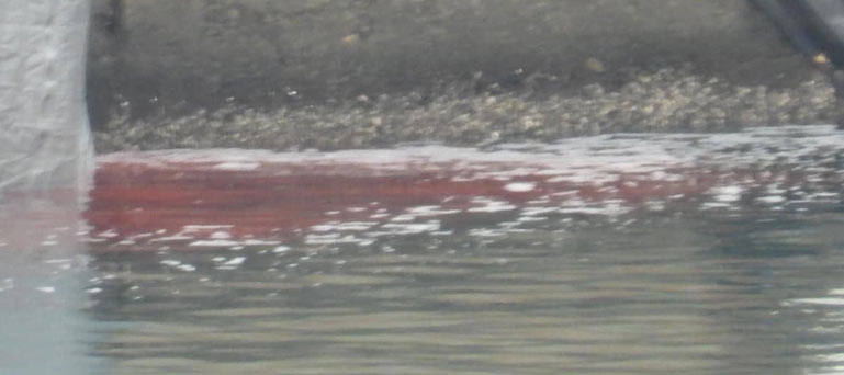 Das Wasser der Bucht ist rot gefärbt vom Blut ermordeten und verletzten Pilotwalen. Heute fand erneut eine Hinrichtung von säugenden Pilotwal Familien in Taiji Japan statt, dessen Verbrechen es ist, Fische in der japanischen See gegessen zu haben. Die Fischer von Taiji, Delfin Mafia, sind der japanischen Regierung Henker's Schergen, Delfine und Wale durch Tötung aus dem Ozean zu entfernen, Eliminierung der Konkurrenz für kleine Fische.