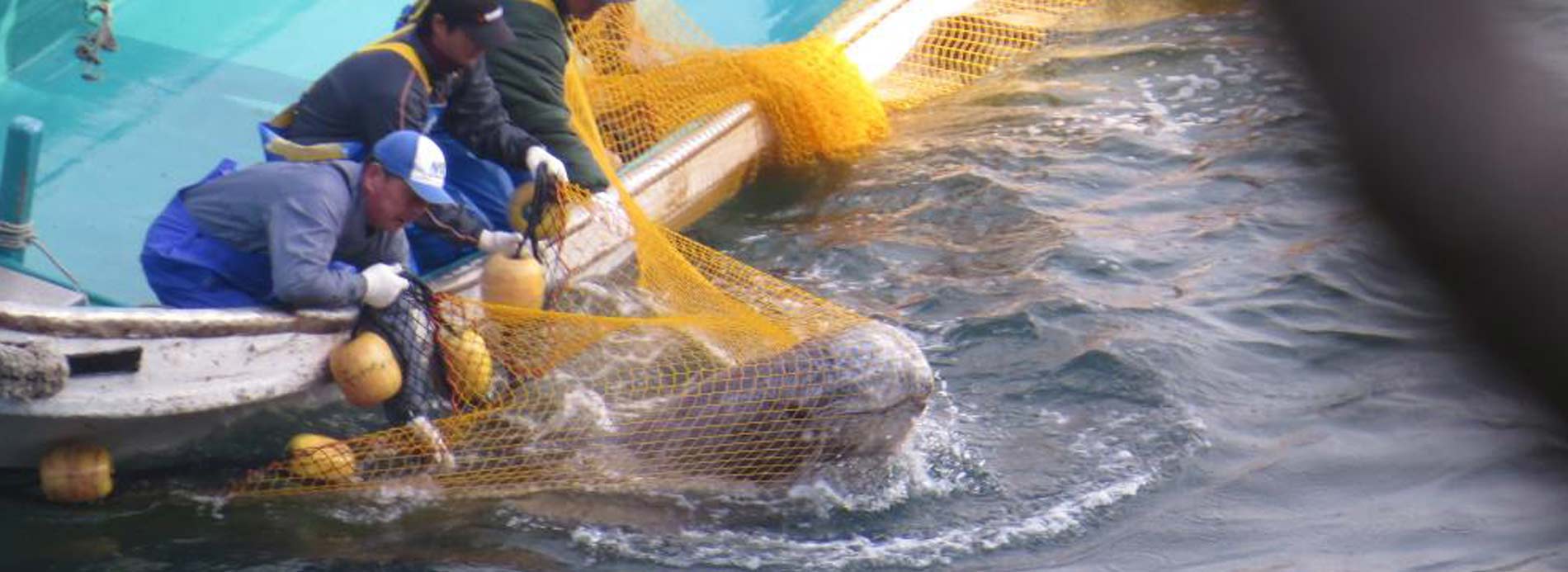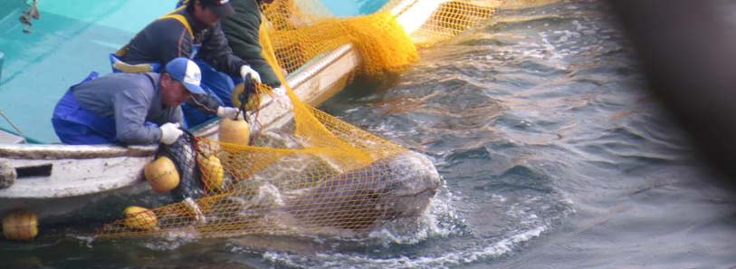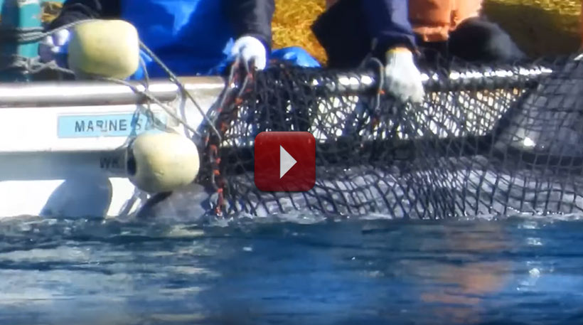 Nach einigen Stunden Aggression, „Verzweiflung“ und Blutdurst, gelang es dem Killerabschaum drei Delfine aus dieser Gruppe außerhalb des Hafens mit Netzen einzukreisen und die Delfine lebend in die Bucht bringen, wo sie geschlachtet wurden. Für die Ausrottung einer so kleinen Gruppe wurde ein immenser Aufwand betrieben.
