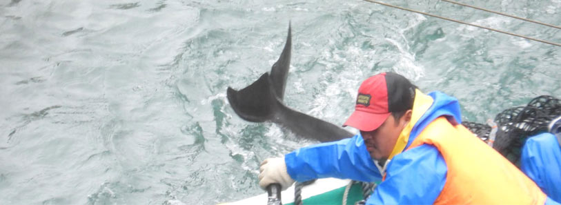 Delfin-Massenschlächter sind der Fischer-Abschaum von Taiji, Wale ertränken die in Fischernetze geraten sind, diese grausamen Verbrechen begeht der Fischer-Abschaum von von Taiji, Schildkröten, Haie Mondfische und andere Nicht-Zielfische oder Beifang, wird vom Fischer-Abschaum von Taiji absichtlich gequält, umhergeworfen und getreten.
