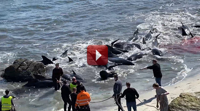 Inklusive der ungeborenen Delfine, wurden heute Samstag, 07. Mai 2022, im Blutsport 71 Pilotwale, bestehend aus mindesten drei Familien mit Kindern, stundenlang im Meer terrorisiert und durch einen Killer-Mob am Strand der Hauptstadt der Färöer Inseln brutal ermordet.