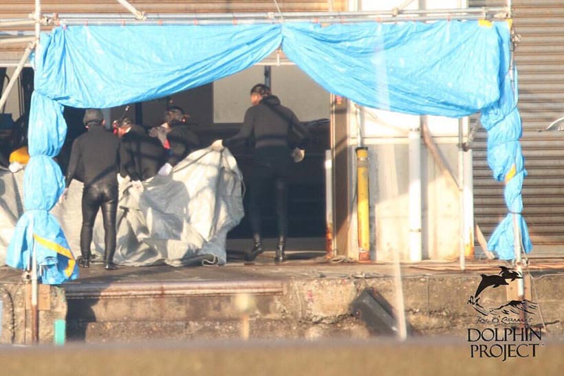 Die Trainer haben soeben einen toten Delfin aus einem der Gefängnisse im Hafen entfernt. Das Abschlachten der Delfine ist schrecklich, das endlose Leiden für Delfine in Gefangenschaft ist genauso Grausam!